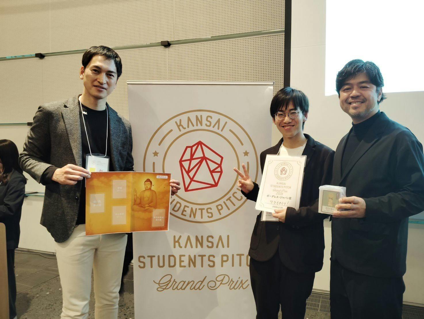 2026/02/24 17:57こんにちは!煩悩カードゲームを制作しております、林泰誠です。先週金曜日(2/20)、大阪で開催された関西スチューデントピッチ2026に、龍谷大学代表として出場させていただきました。関西スチューデントピッチ2026はこちらから関西18大学から集まった同世代の事業プレゼンは、いずれも実行を伴った挑戦ばかりで、大変刺激を受けました。そのような場で、生まれたばかりの煩悩カードゲームの可能性を語ることができるのか、不安もありましたが、日頃より助言をいただいている事業家の後押しもあり、カードゲーム誕生の背景や今後の展望について5分間お話しさせていただきました。発表直前は緊張していましたが、「自分のカードゲームを多くの人に知ってもらえる」という喜びの方が大きく、どのような反応をいただけるのかとても楽しみでもありました。練習を重ねたおかげで落ち着いて話すことができ、心から楽しい時間となりました。その結果、企業賞の一つであるボーダレス・ジャパン賞を頂戴いたしました。株式会社ボーダレス・ジャパンは、「社会課題をみんなの希望に変える」ことを理念に掲げ、国内外でソーシャルビジネスを展開している企業です。貧困や環境問題、教育格差など多様な社会課題に対し、寄付ではなく“ビジネスの仕組み”によって解決を目指している点が特徴です。そのような企業から賞をいただけたことは、煩悩カードゲームが対話を通じて社会に価値を生み出す可能性を持つ取り組みとして評価された証であり、大変光栄に感じております。株式会社ボーダレス・ジャパンのホームぺージはこちらからまた、審査員の方々との質疑応答を通して、本プロジェクトにはまだまだ多くの可能性があることを実感いたしました。今回の受賞は、私一人の力によるものではありません。日頃から助言をくださる事業家や創業支援ブースの皆さま、カード制作にご協力くださったイラストレーターやデザイナーの方々、テストプレイやイベント運営を支えてくれた友人、大学広報や新聞社の皆さま、そして大学3年の頃お世話になりました、龍谷大学グローバル推進センターの皆さまなど、多くの方々のご支援とご縁の積み重ねによるものです。さらに、クラウドファンディングを通じて応援してくださっている皆さまにも、心より感謝申し上げます。煩悩カードゲームが注目していただけたのは、対話を通じてありのままの自分をさらけ出し、笑い合える時間や仲間を私たちが求めているからこそだと感じています。クラウドファンディングも残り2週間となりました。引き続き、一歩ずつ前進してまいります。今後とも何卒よろしくお願い申し上げます。 もっと見る