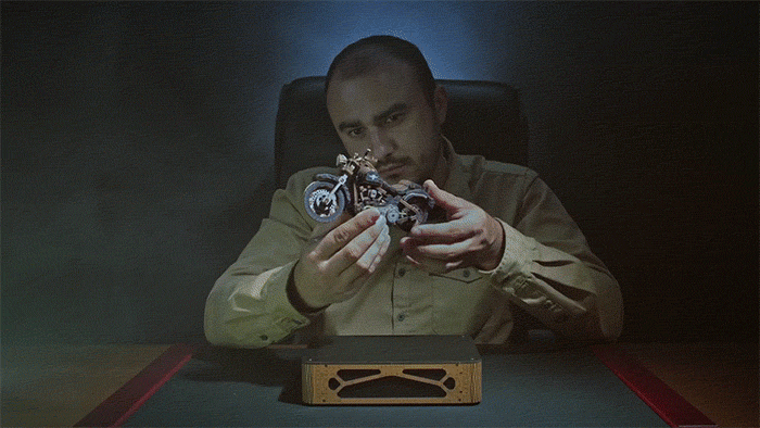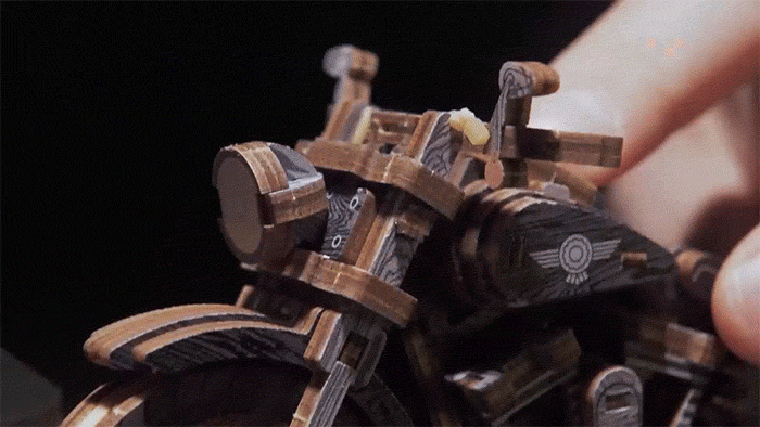 組み上げた瞬間に走り出す精巧なバイク。自らの手で完成させた!という達成感を存分に味わえます。