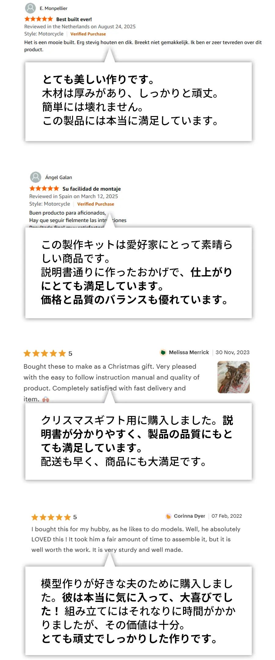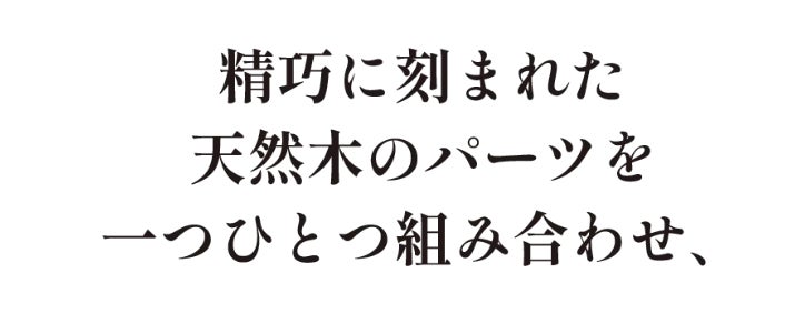 天然木を活かした美しいパーツは、組み立てるほどに品質の高さを実感できます。