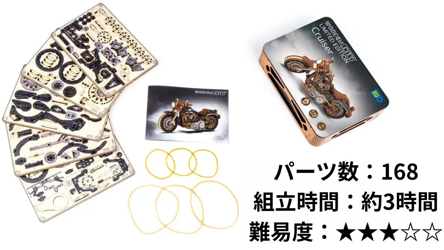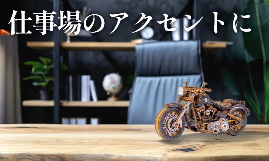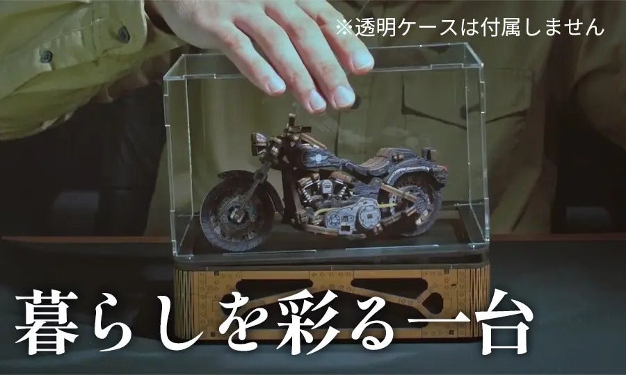 このモデルは、細部までリアルに作り込まれたバイクの構造を楽しめるだけでなく、組み上げた瞬間の達成感や、飾って眺める喜びも感じていただける商品です。