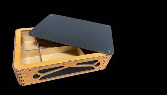 ボックスには磁石式のふたを採用しており、横にスライドして簡単に開閉可能。組み立て後はディスプレイ台としてだけでなく、大切な小物を収納できるトレジャーボックスとしても活用できます。