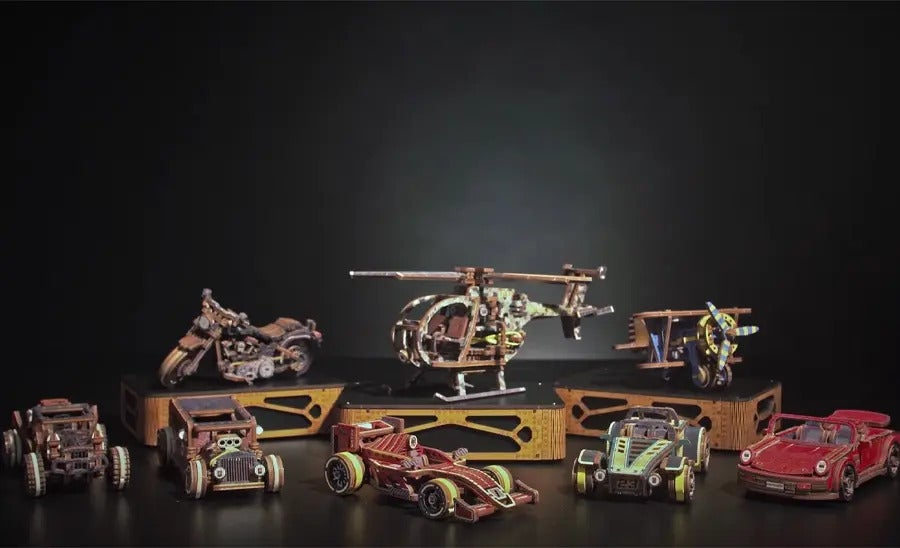 私たちが展開するブランド「WOODEN.CITY」は、機械仕掛けの自走式木製パズルや立体モデルの設計・製造を一貫して手がけています。