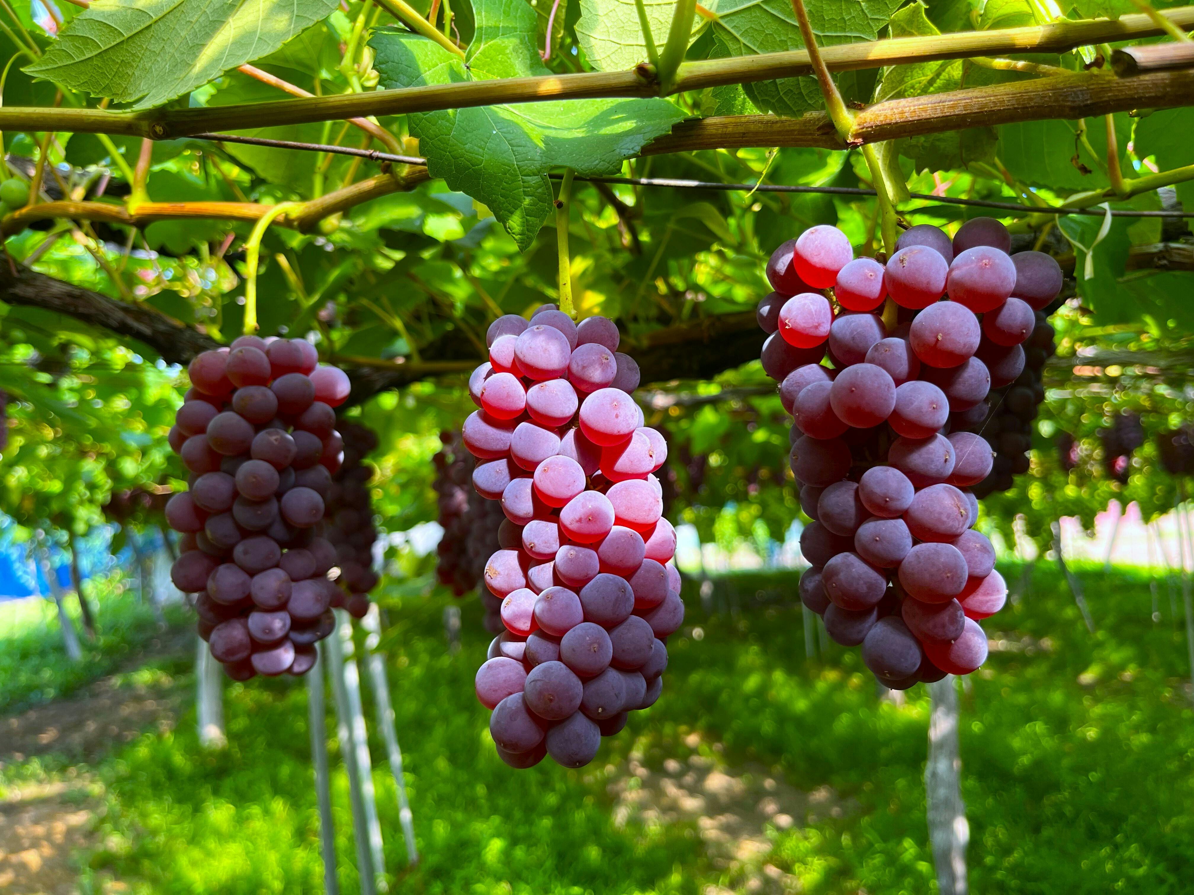 当園ではデラウエアの他、大粒のぶどうも栽培しており、毎年夏から秋にかけて多くのお客様に味わっていただいています。