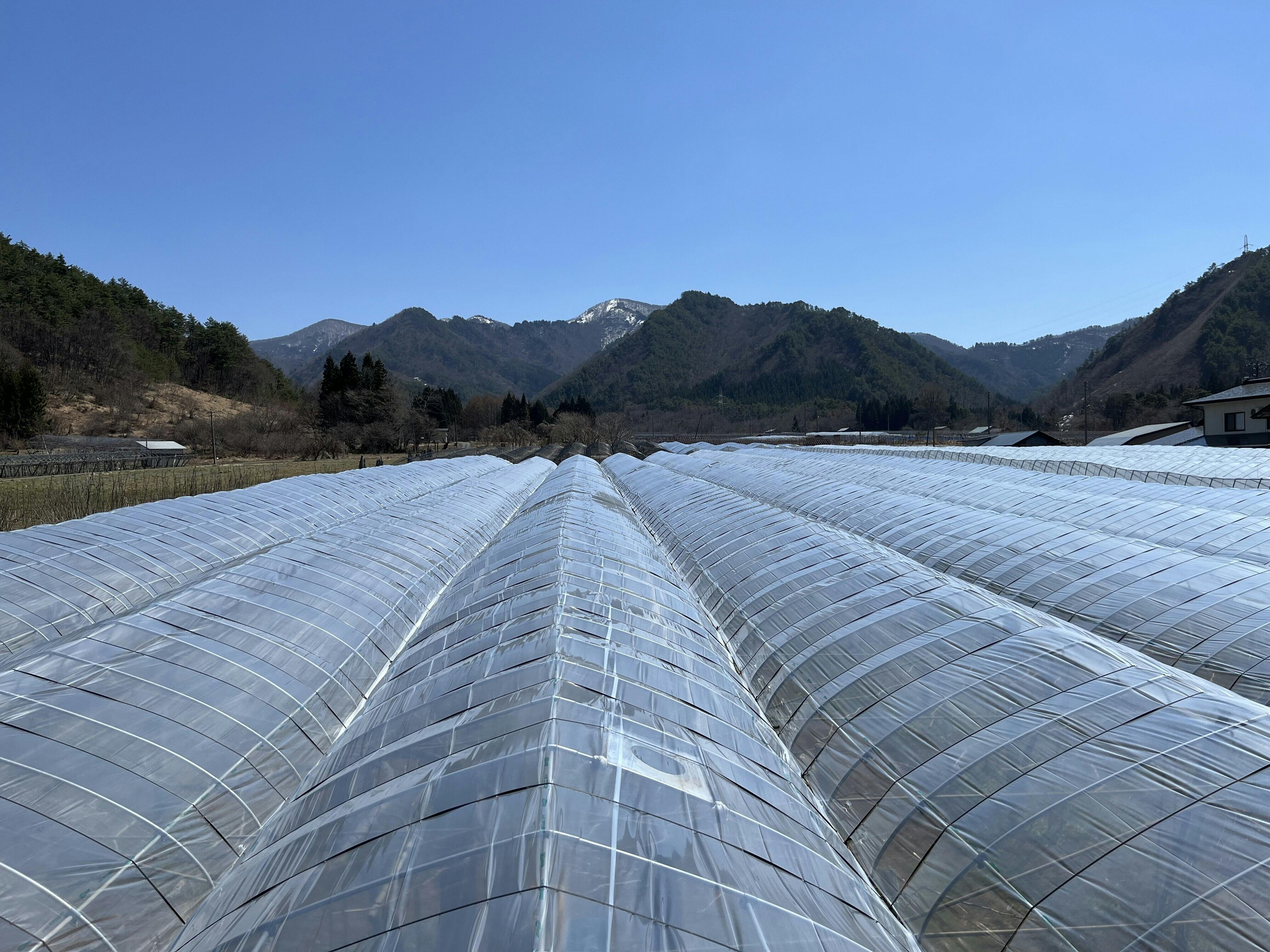 二瓶果樹園は県南部の置賜(おきたま)地方にあります。山々に囲まれた盆地で、夏は太陽の光がさんさんと降り注ぎ、冬は雪がしんしんと降り積もるようなところです。