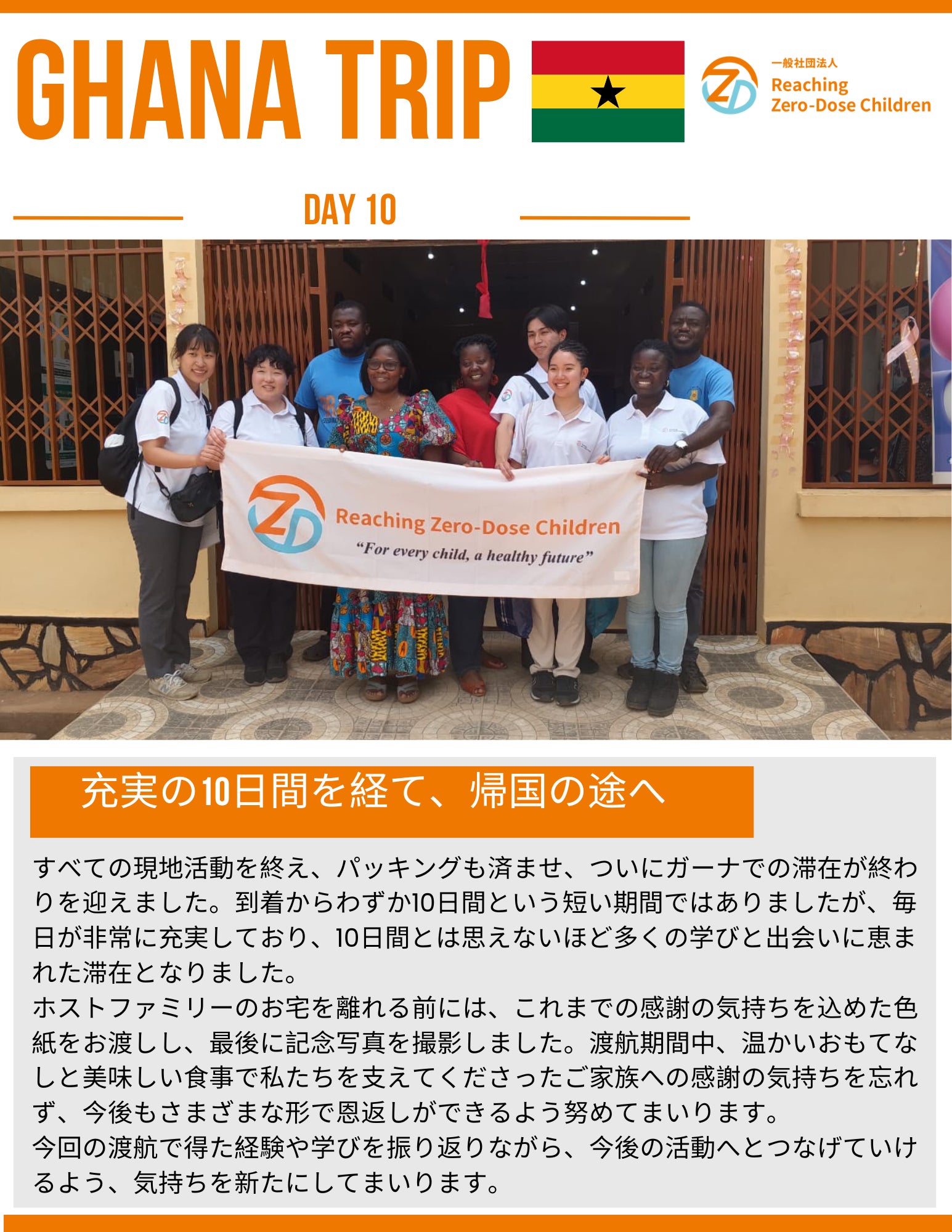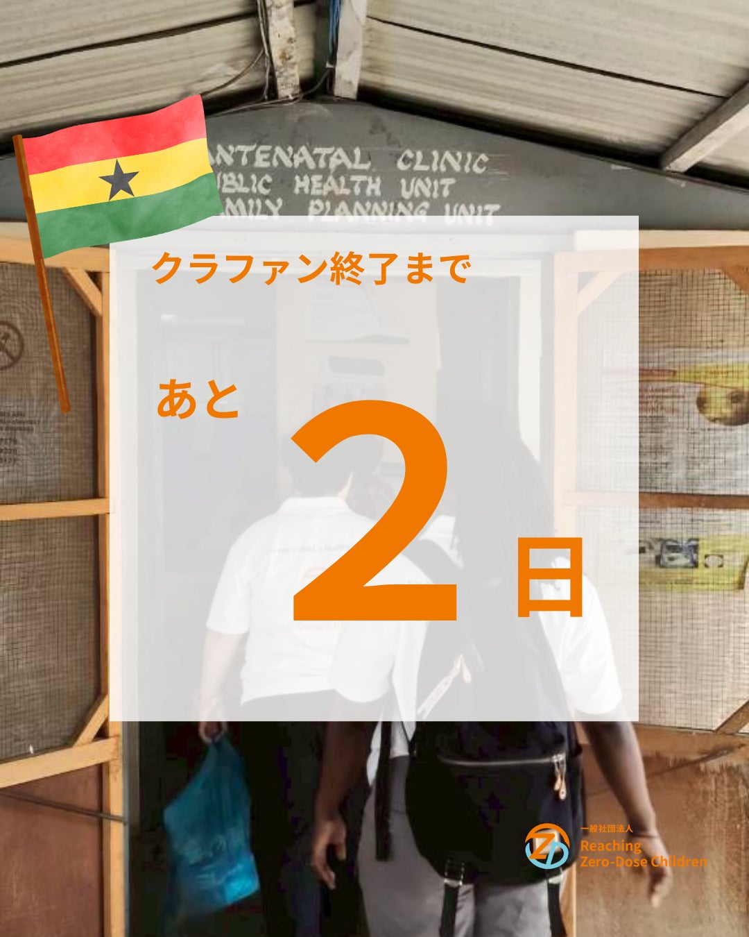 「ガーナのワクチンの課題に挑む!暮らしの中で育む健康習慣 ~未来の子どもたちへ~」プロジェクトのクラウドファンディング終了まで、いよいよ 残り2日 となりました。ここまで多くの温かいご支援をお寄せいただき、誠にありがとうございます。現地での活動を通じて、学校での健康教育の実施や地域の保健医療体制の視察など、ガーナにおける予防医療の課題を現場の視点から学ぶことができました。こうした取り組みは、皆さまからのご支援があってこそ実現できたものです。現在、目標金額の達成に向けて最後のラストスパートを迎えています。もし可能でしたら、ご家族やご友人、SNS等で本プロジェクトをご紹介・シェアいただけますと幸いです。皆さまからの応援や発信が、さらなる支援の輪を広げる大きな力となります。▼プロジェクトページはこちらhttps://camp-fire.jp/projects/912415/view募集終了まで残りわずかとなりましたが、最後まで全力で取り組んでまいります。引き続き、温かいご支援のほど何卒よろしくお願い申し上げます。
