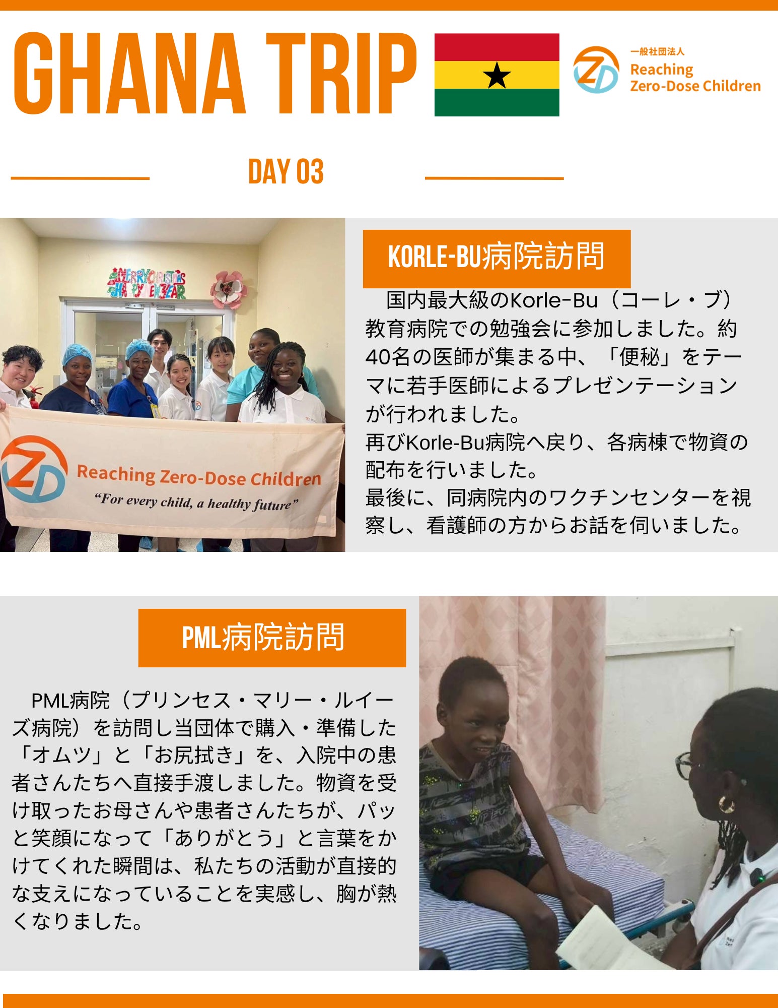 ガーナ渡航5日目、早朝5時にアクラを出発し、ケープ・コーストにあるエルミナ城を訪問しました。エルミナ城は、16世紀から19世紀まで使われた奴隷貿易の遺産です。特に印象に残ったのは、人々が収容されていた地下牢の暗さや狭さ、壮絶な暮らしの様子です。現地の方がツアー形式で案内してくださいました。また、同じタイミングでガーナの小学2年生が課外授業の一環として訪れていたことにも驚きました。ガーナでは、平和教育としてライフステージに応じて、学生のうちに何度もこの場所を訪れる機会が設けられているようです。夕方からは、在ガーナ日本国大使公邸にて天皇誕生日祝賀レセプションに参加させていたしました。日頃より当団体の活動を支えてくださっている企業の皆さまに加え、新たな出会いにも恵まれる、大変有意義な時間となりました。義本博司駐ガーナ共和国日本国特命全権大使のご挨拶では、来年、日本とガーナの間で三つの記念すべき節目の年を迎えるとのお話がありました。2027年は、野口英世博士のゴールドコースト来訪100周年、日本とガーナの外交関係樹立70周年、そして国際協力機構(JICA)ボランティア派遣50周年にあたるとのことです。こうした大きな節目に向け、今後さらに各分野における協力と交流を深めていくとのお話がありました。当団体としても、今回のガーナ訪問で得た学びを糧に、次年度以降も引き続き、グローバルヘルス分野において少しでも課題解決に貢献できるよう、活動に一層取り組んでまいります。応援&ご支援をどうぞよろしくお願いいたします!詳細はこちら↓https://camp-fire.jp/projects/912415/view