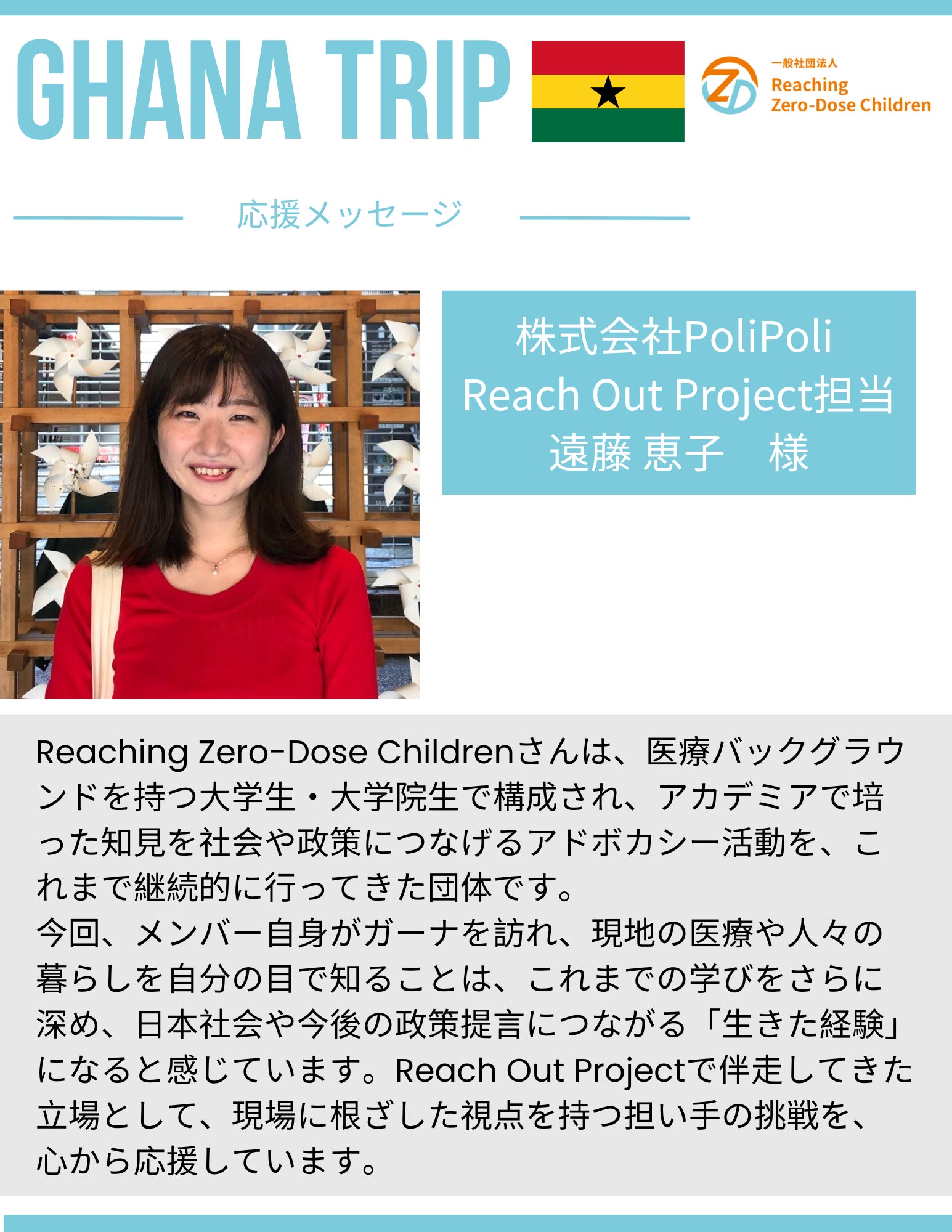 およそ21時間のフライトを経て、渡航メンバー3名全員が無事にガーナの首都アクラへ到着いたしました。出発便の遅延や乗り継ぎの影響により移動中は慌ただしい場面もありましたが、現地で受け入れてくださる皆さまと無事に合流することができ、安堵しております。到着後は、日本から持参した手土産や支援物品の整理を行うとともに、今後約10日間の活動スケジュールについてメンバー間で最終確認を行いました。また、滞在先ではフローレットをはじめ、ご家族やご友人の皆さまに温かく迎えていただき、現地のお食事をご用意いただくなど、大変ありがたいお心遣いをいただきました。明日以降、本格的に各活動を開始します。体調管理に留意しながら、現地での学びを一つひとつ大切にしてまいります。引き続き、応援&ご支援をどうぞよろしくお願いいたします!詳細はこちら↓https://camp-fire.jp/projects/912415/view