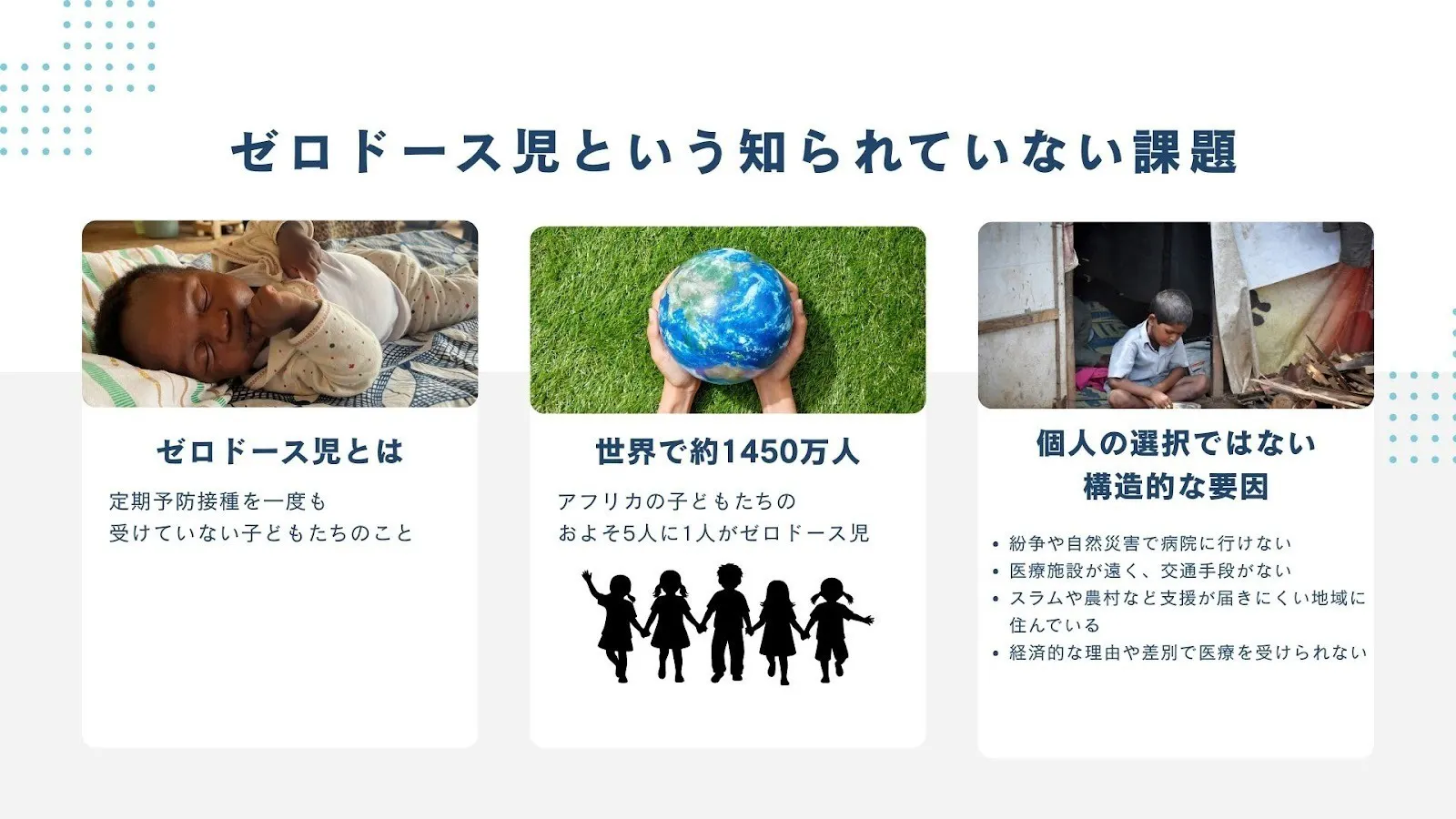 世界にはワクチンなどの基本的な医療にアクセスできず、