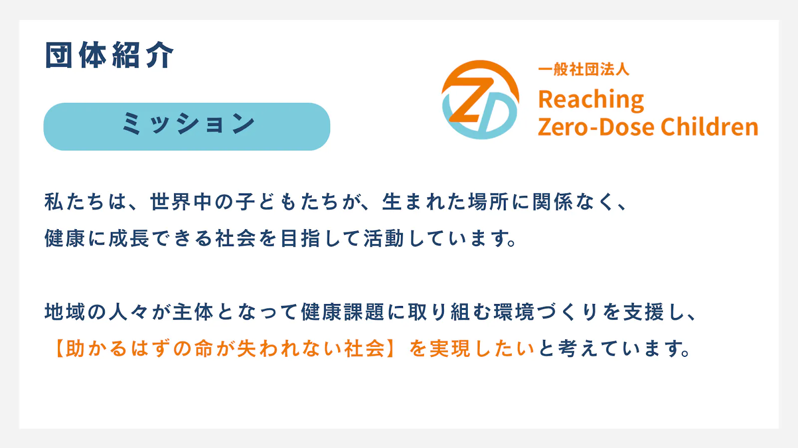 未来ある子どもたちが、予防できる病気で命を落とすことがない社会づくりを目指します。