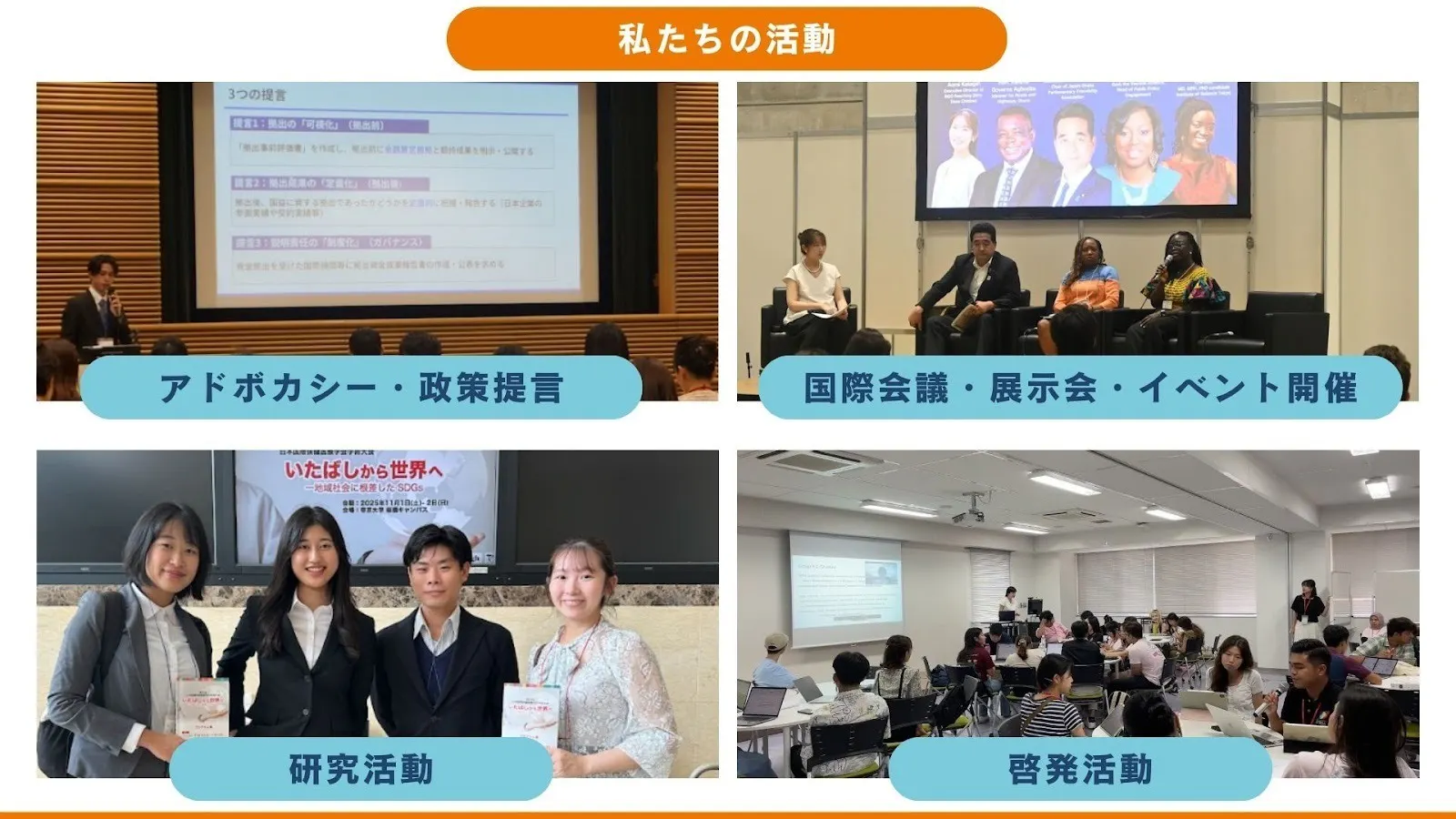 政策提言、イベントでの発信、研究活動を通じて、