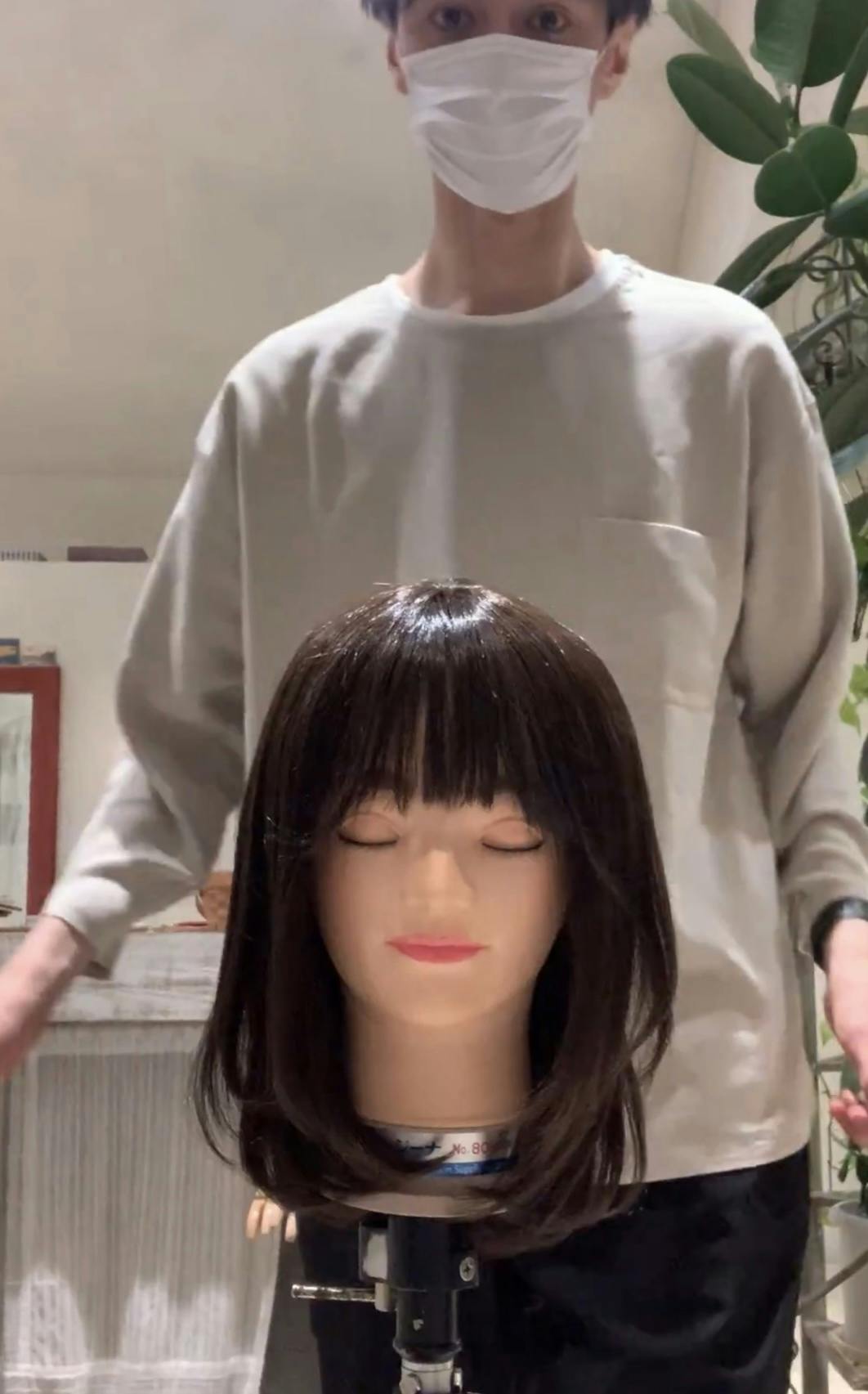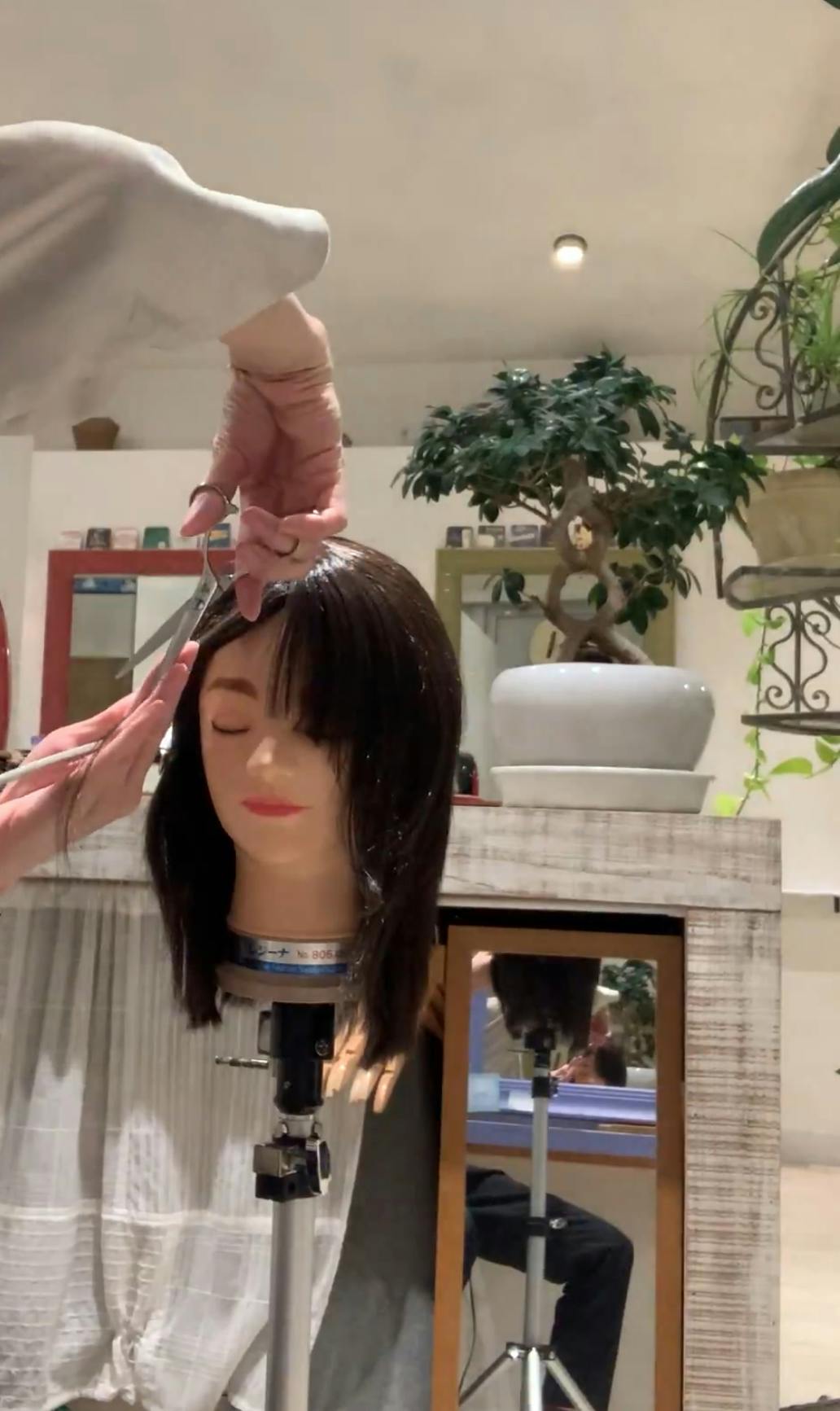 初めてウィッグを被った状態でカットしたあと、