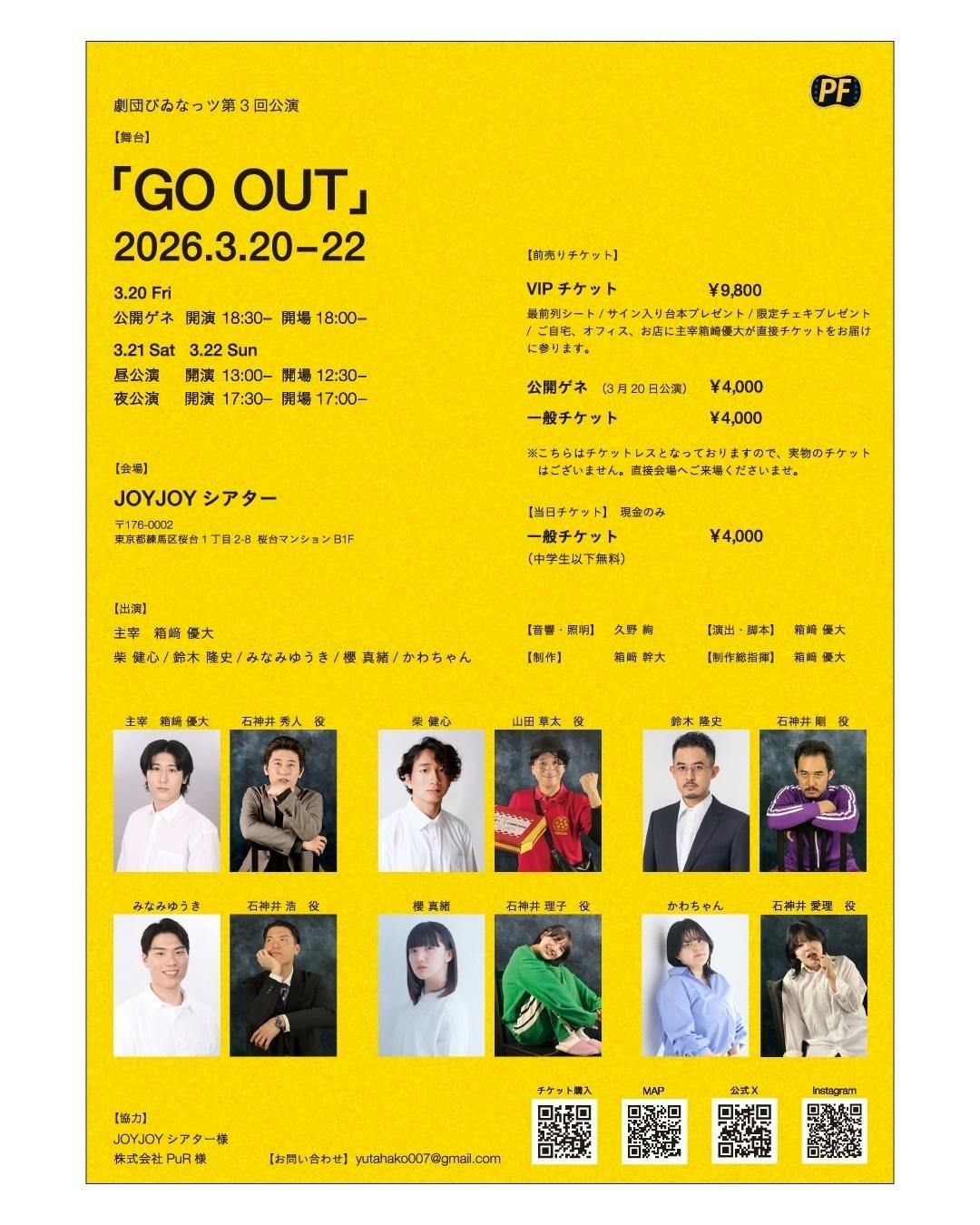 この度上演する第三回公演「GO OUT」は、家族をテーマにした作品となっております。