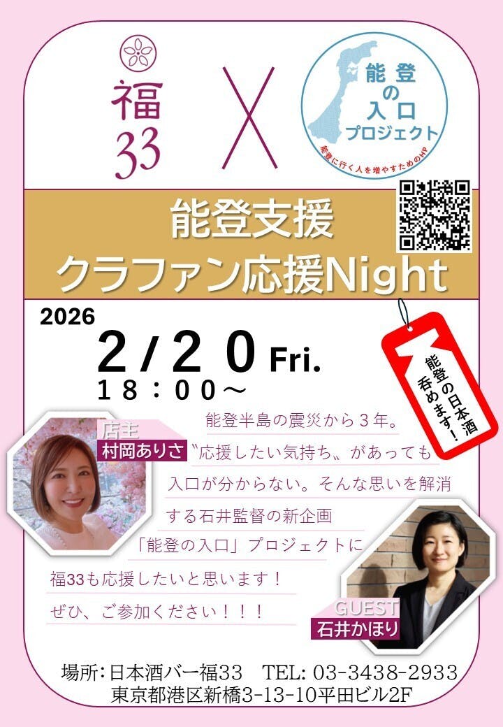 新橋の「日本酒バー福33」店主・村岡ありささんからお申し出いただき、