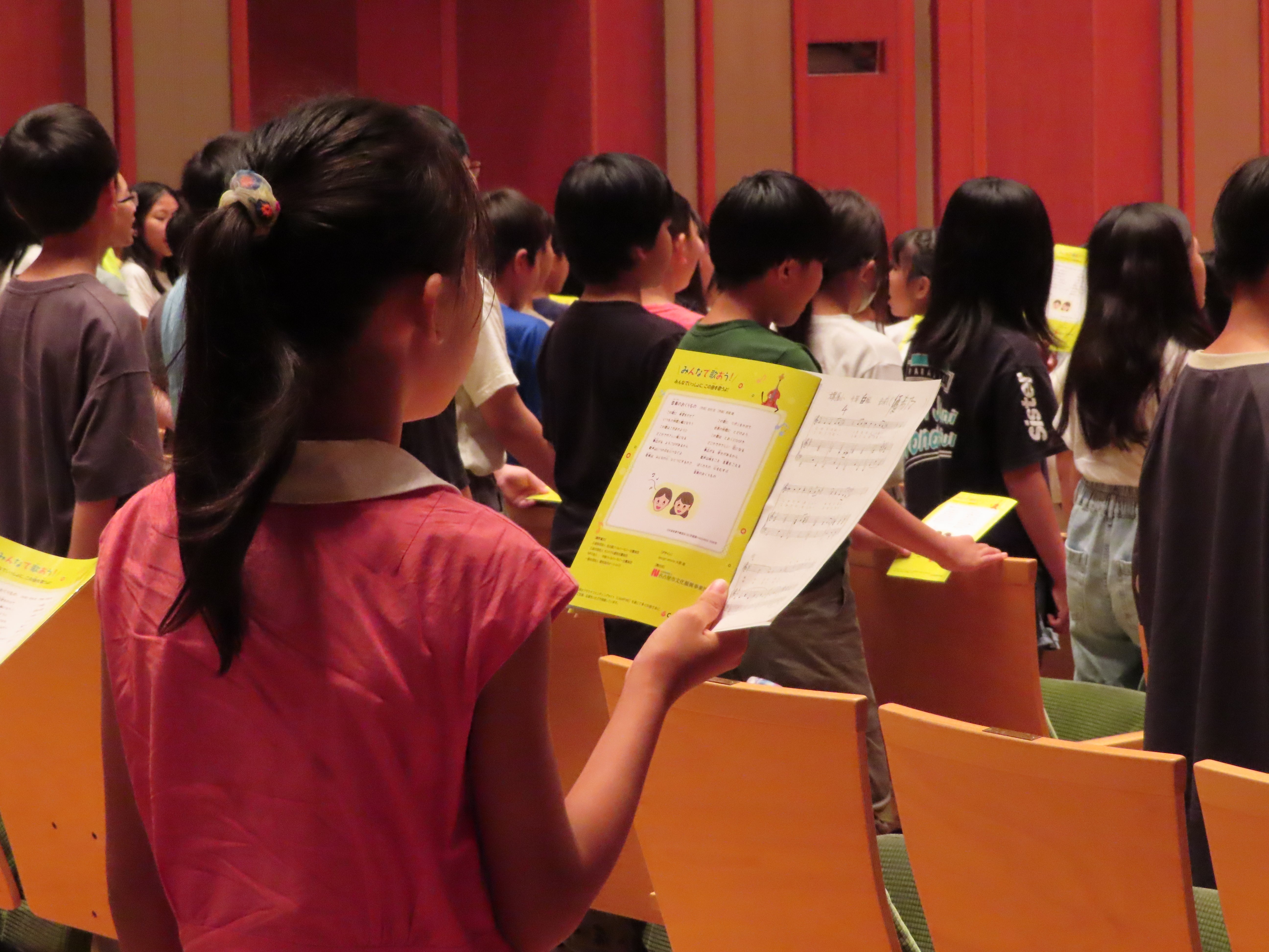 合唱曲「音楽のおくりもの」を、会場の子ども全員がオーケストラの演奏に乗せて歌います。初対面の子ども同士でも、歌声で会場がひとつに重なる瞬間が生まれ、スタッフも毎回胸が熱くなります。