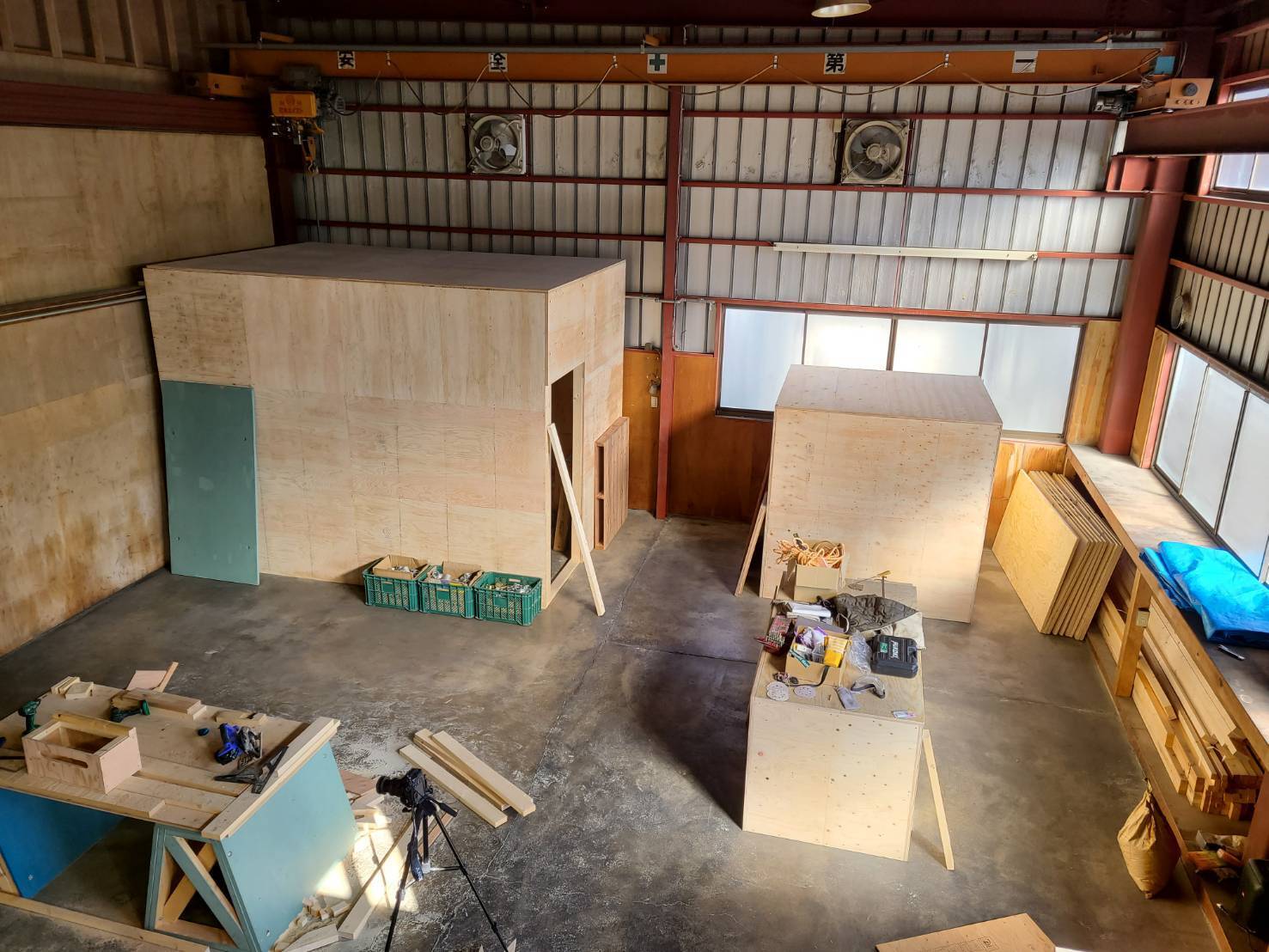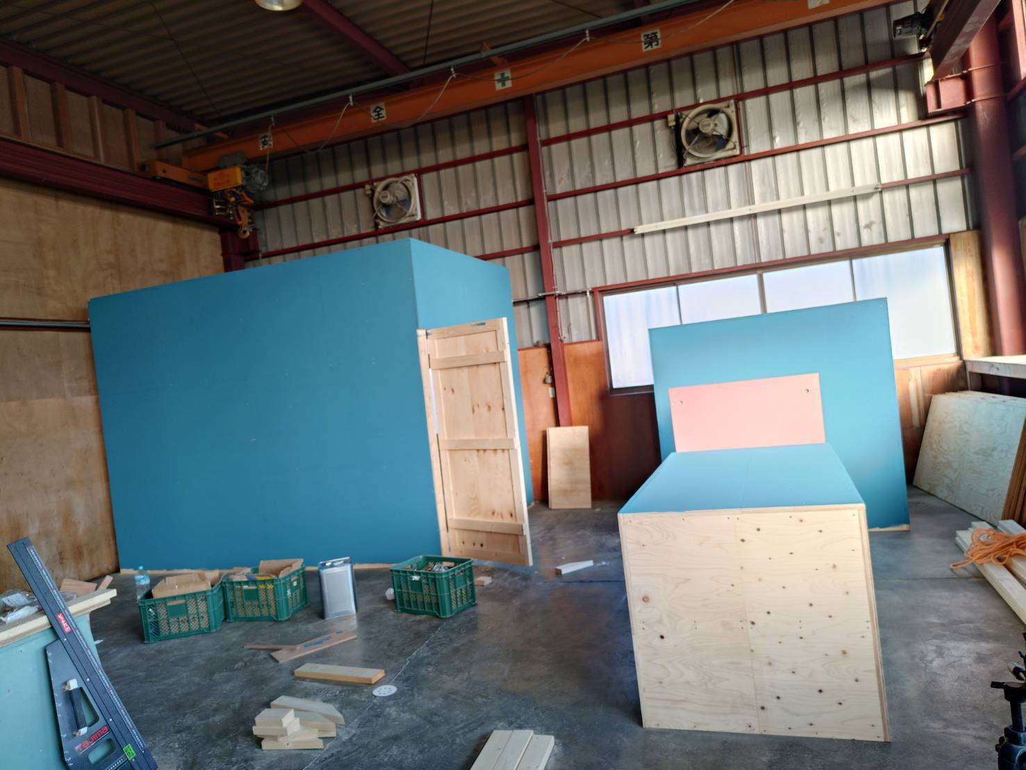 倉庫の中に工房を作成!お客様の「これがあったら…」「あれ作って!」に早急に対応するための開発工房を作成します!常に進化するジムを目指します!!