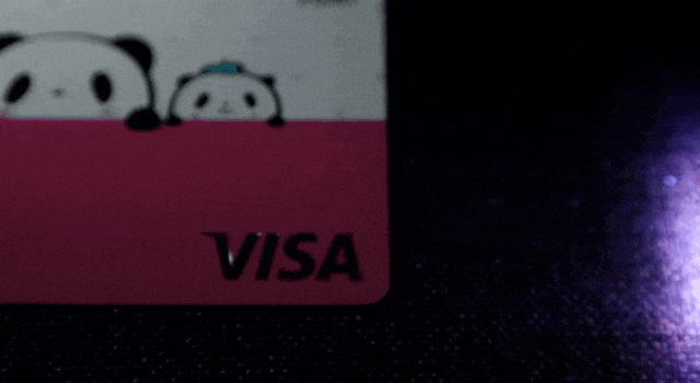 クレジットカードにUVライトを当ててみると、写真1枚目のように、ちゃんと「V」の文字が浮かび上がります!