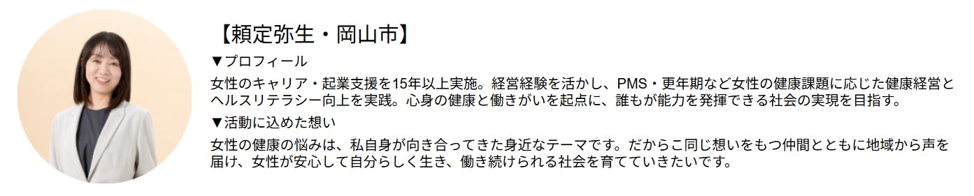 【実行委員ピッチリレー】「我慢」を当たり前にしない。岡山で15年、運営メンバー・頼定さんが「健康・お金・働き方」を丸ごと支える理由