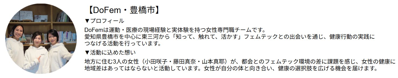 フェムテックを“技術”にとどめず、女性の人生に寄り添う社会基盤 として広げる力になります。