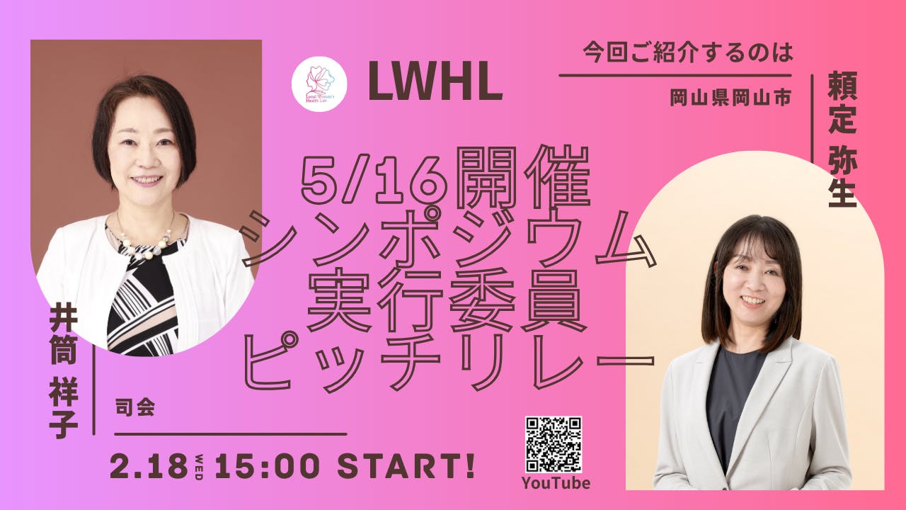 2026/02/27 11:43全国の実行委員の想いを繋ぐ「ピッチリレー」。 今回は、LWHL(Local Woman’s Health Lab)の運営メンバーであり、岡山を拠点に実行委員として活動する頼定 弥生(よりさだ やよい)さんをご紹介します。岡山市で15年にわたり、子育て中の女性の再就職や起業を支援するNPOを運営してきた頼定さん。ご自身も更年期や子宮内膜症を経験したことを機に、「長く働き続けるには、健康課題への理解が欠かせない」と痛感されました。現在は企業のコンサルティングを通じて、女性社員のヘルスリテラシー向上や、企業の意識改革に取り組まれています。頼定さんの視点は、単なる健康維持に留まりません。「健康・お金・精神的/経済的自立」の3つが揃ってこそ、人生100年時代を幸せに生き抜くことができる。そう考え、10代の若者が抱える生きづらさから大人の働き方まで、地域が抱える課題に幅広く向き合っています。5月16日のシンポジウムでは、医療の専門家だけでなく、ファイナンシャルプランナーや社労士、結婚相談所など、約20のブースが連携します。健康もお金もキャリアも、人生を「丸ごと」相談・体験できる岡山ならではの場を構想中です。「まずは自分自身の体を知り、大切にすることから」。 岡山で15年、女性たちに伴走し続けてきた頼定さんの熱い想いを、ぜひアーカイブから「声」で聴いてみてください。▼実行委員ピッチリレー(岡山・頼定 弥生さん) https://youtube.com/live/eNuOf5-7doo▼YouTubeチャンネルの登録はこちらからhttp://www.youtube.com/@lwhl_femtech引き続き、あたたかい応援をどうぞよろしくお願いいたします。 もっと見る