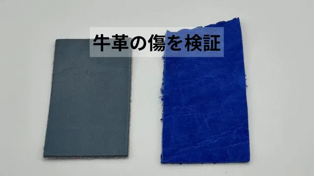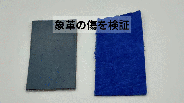 テスト方法は「エレファントレザー」と「牛革」を爪で傷をつけてみます。