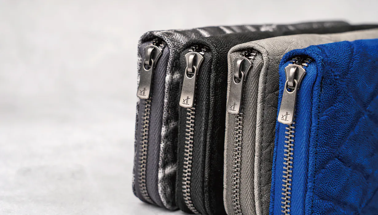 財布を使うには必ずファスナーを使用するので、ファスナーには引っかかりがなくスムーズに使用してほしいのでYKK高級ファスナーの「エクセラ」を使用しています。