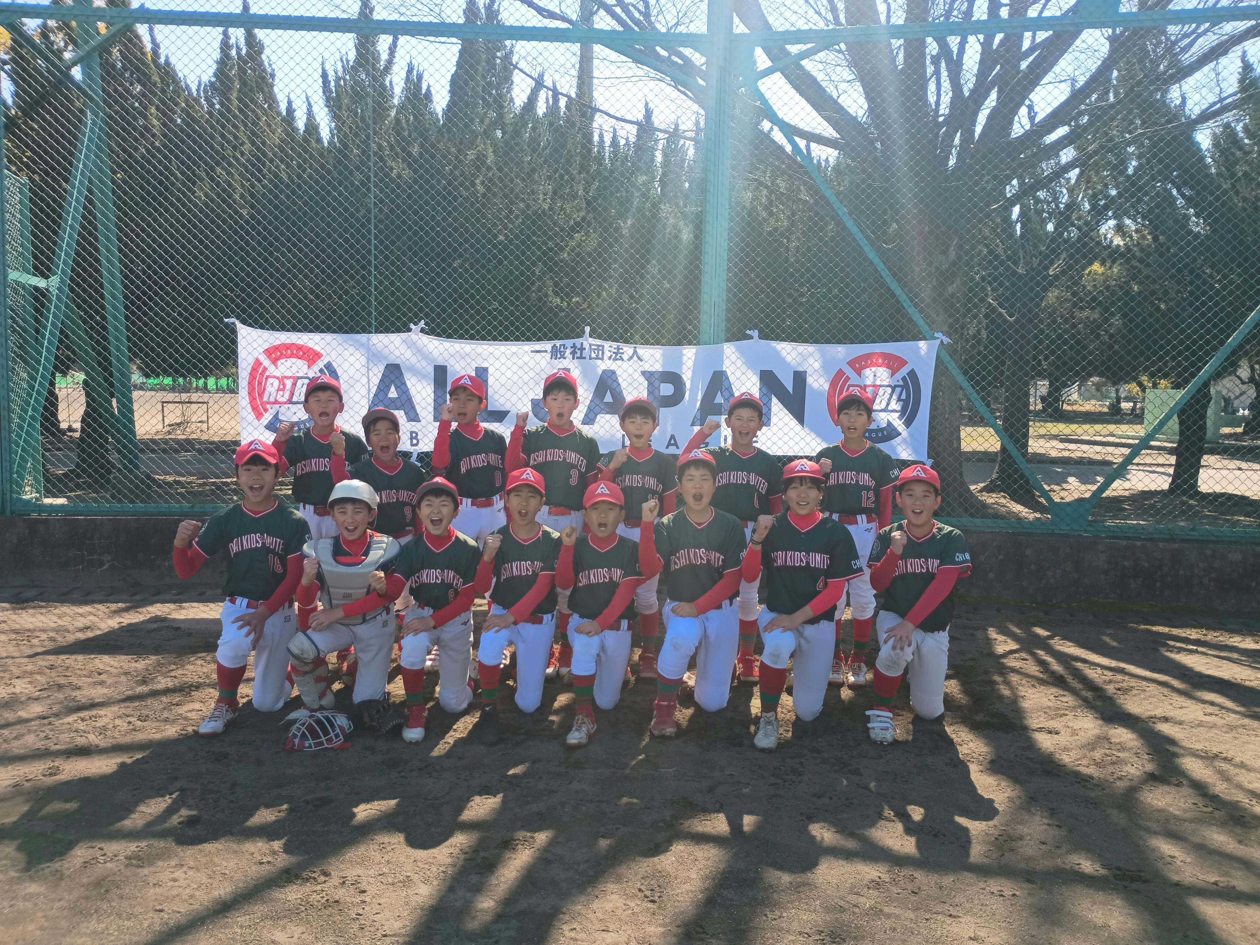 Bチームの初戦は松尾クラブ(京都府)さん。AK☆U後攻。初回から、AK☆Uはピンチを迎えます。初戦のプレッシャーか夜中に出発しバスで6時間の長旅での疲れなのか、今までで初めて見るエース姿であった。1,2番共に四球となり無死1・2塁のピンチ…。そこから守備の乱れから初回被安打0にも関わらず2失点となる。悪い流れから抜け出せず3回の裏、AK☆Uの攻撃先頭打者が死球で出塁し1・2番が小技で相手のミスを誘い無死満塁の大チャンスを迎え3番打者がなんと満塁ホームラン。この回一挙に逆転し結果7-2で初戦を逆転勝利することが出来た。2日目準々決勝の相手は木津ブライト(愛知)さん。AK☆U後攻。前日とは大違いエース初回からエンジン全開で三者凡退にて最高の立ち上がりとなったが2回に守備の乱れから自ら点数を挙げるかたちとなり2失点、3回にスクイズにて追加点を取られ3-0とまた悪い流れの試合展開に…攻撃では相手の緩急に翻弄されあっという間に最終回へ。相手のエラーから出塁し、安打・四球から満塁のチャンスとなったが、1点どまりで試合終了となる。3-1で敗退、悔しい悔しい敗戦となったが、2月時点で非常に良い経験が出来ました。この悔しさを次に繋げるために再挑戦し、またこの舞台に戻ってこれるように頑張りたいと思います。