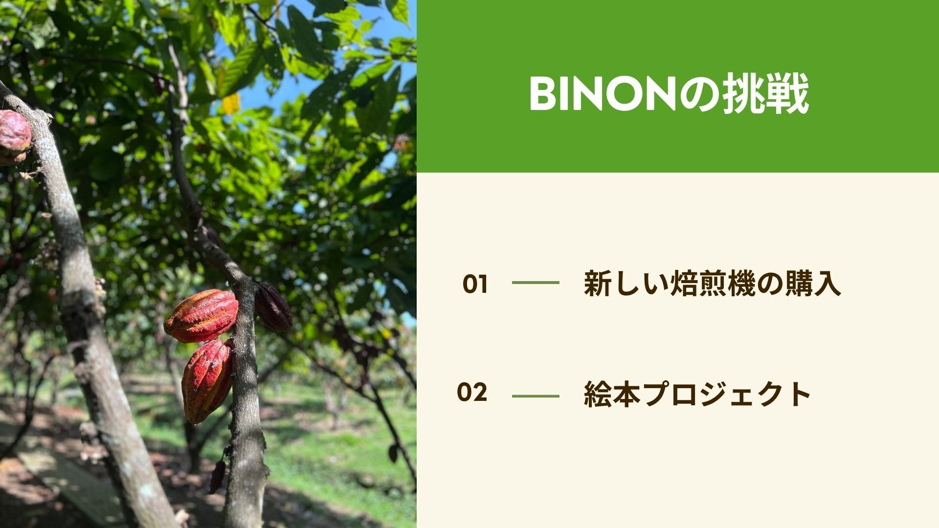 どうか、BINON CACAOの次のステージを、一緒に作ってください。