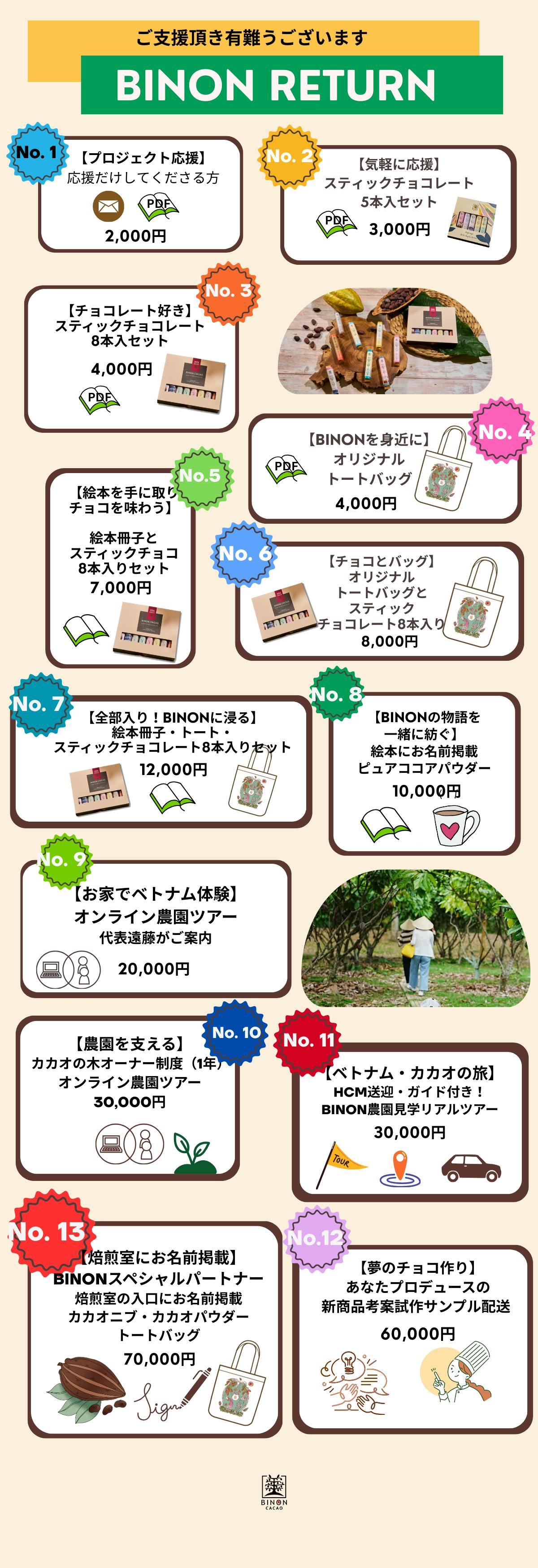 私たちの「物語」や「ベトナムの空気」を感じていただけるようなリターンをご用意しました。