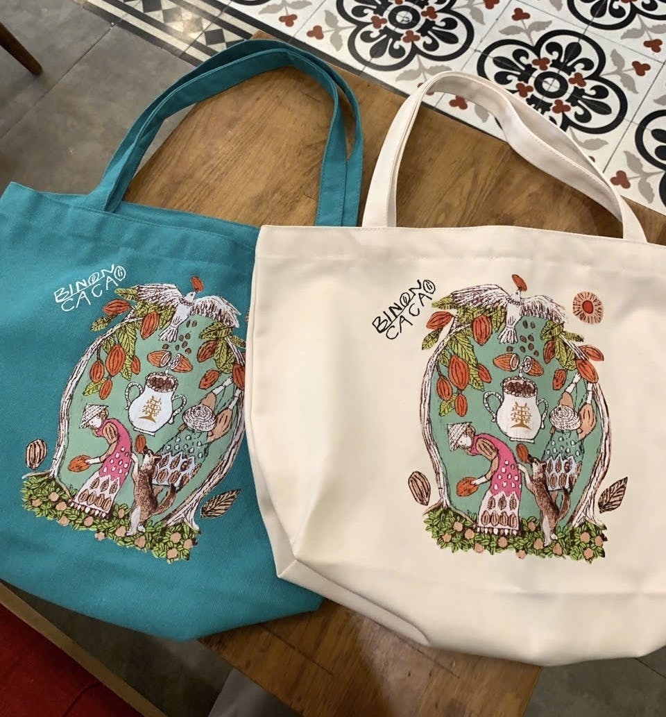 クラウドファンディングの返礼品としてお届けするBINON CACAO オリジナルトートバッグのサンプルができました。