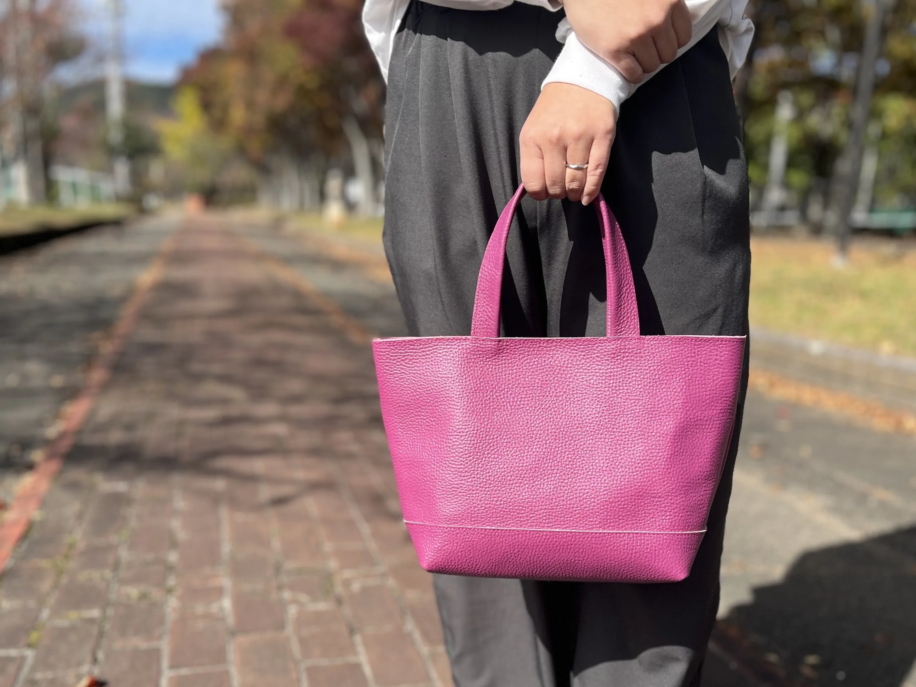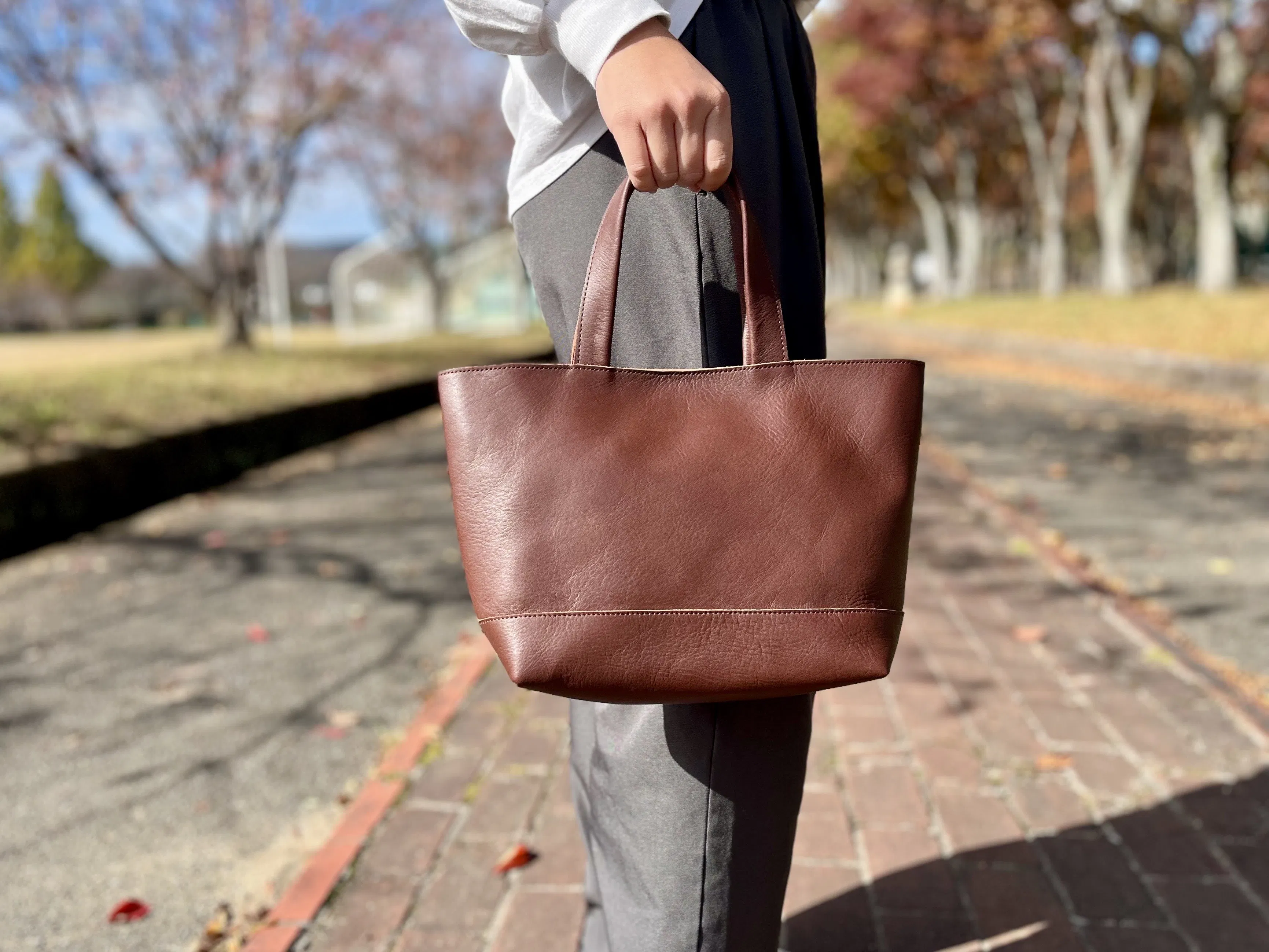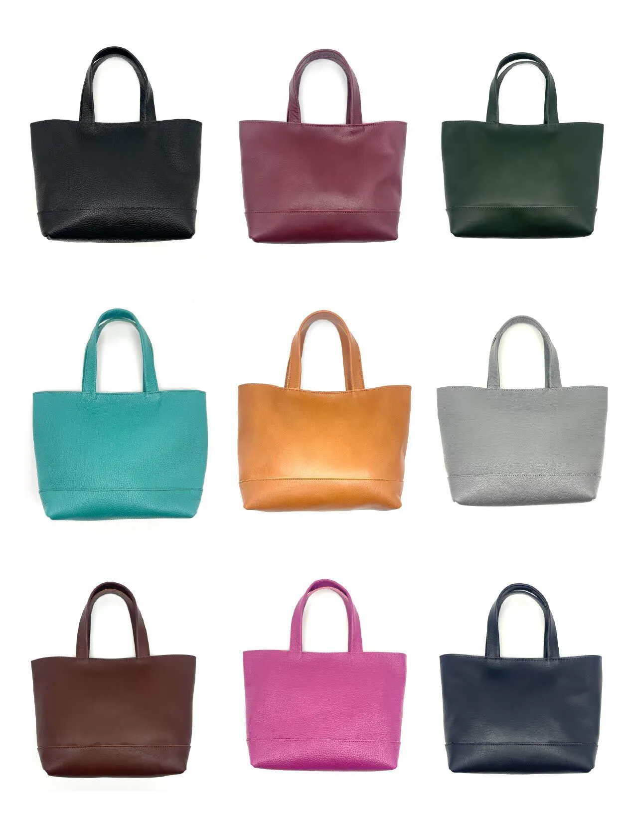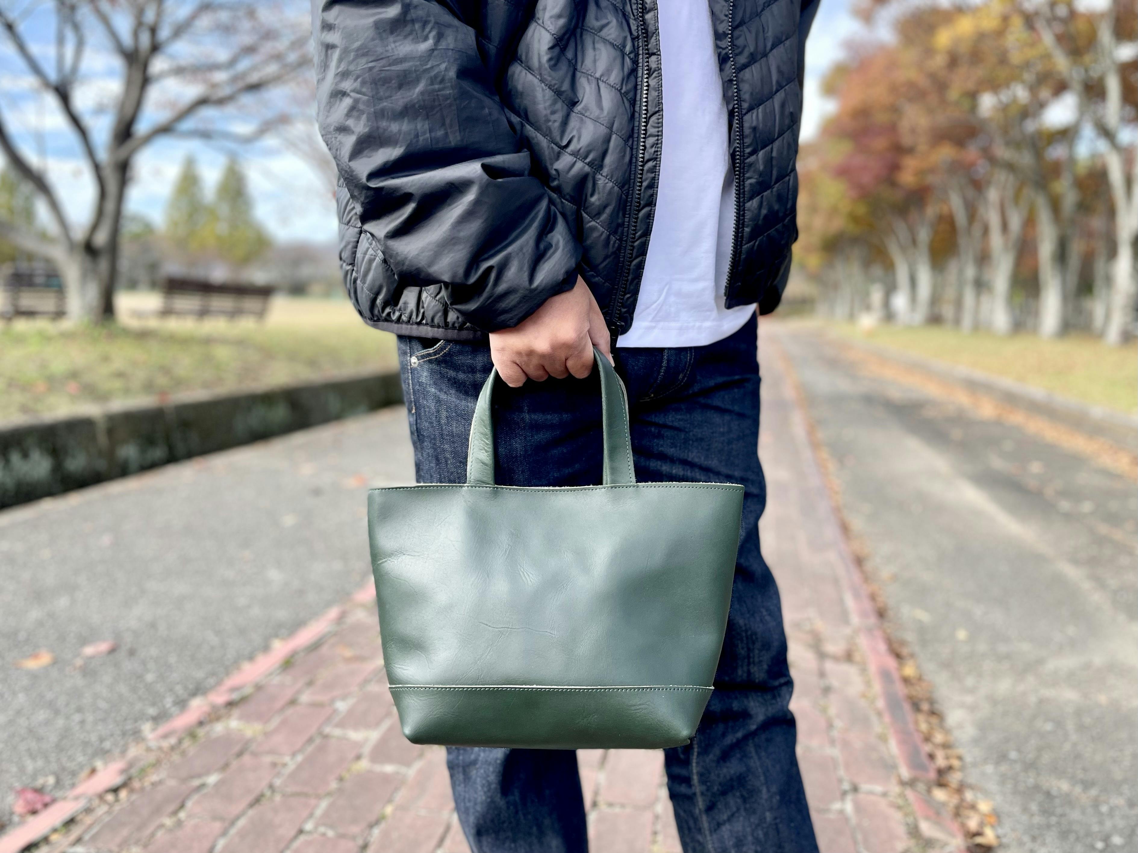 Lサイズトートバッグには少し厚みのある革を使用し、カラーは使いやすく、なるべく落ち着きのあるものを選定しています。その他の小物類は、明るいカラーのものが多数ございます。