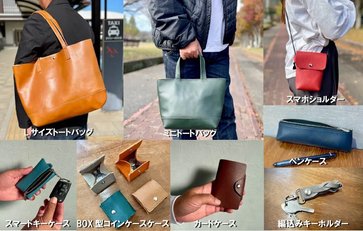 Lサイズトートバッグ・ミニトートバッグ・スマホショルダー・スマートキーケース・BOX型コインケース・ペンケース・カードケース・編込みキーホルダー