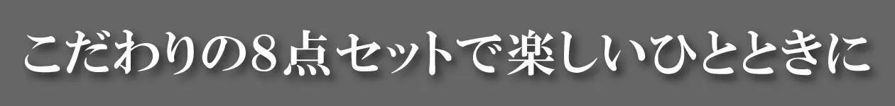 1人で8点セットを独り占めして楽しんで頂いてもOK。またご家族やご友人と運試しやシェア、プレゼントの1つとして、楽しいひとときのキッカケになればと思います。それでは8点セットをご紹介します。