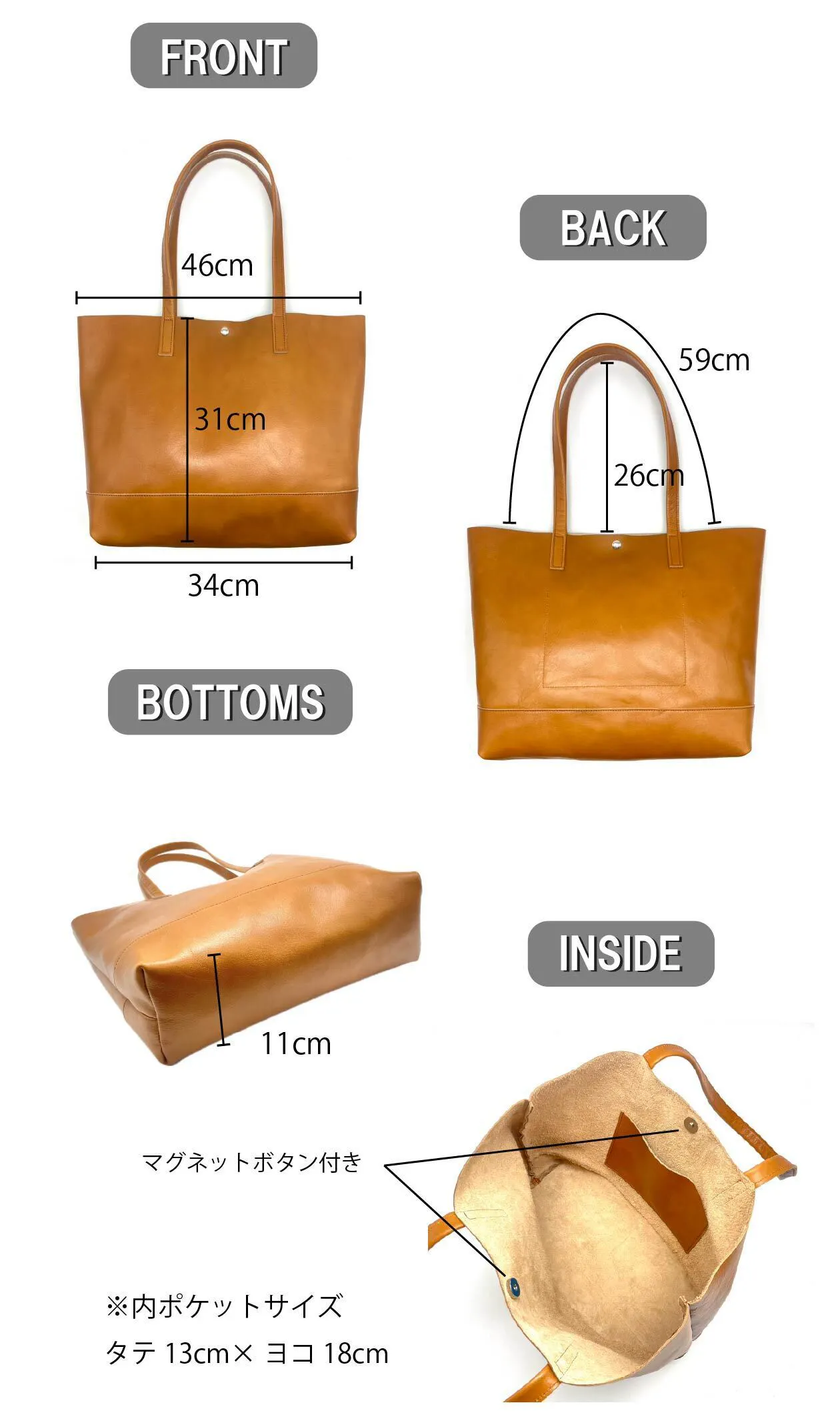◆サイズ:タテ約31㎝×ヨコ約34㎝×マチ約11㎝(開口部46㎝)