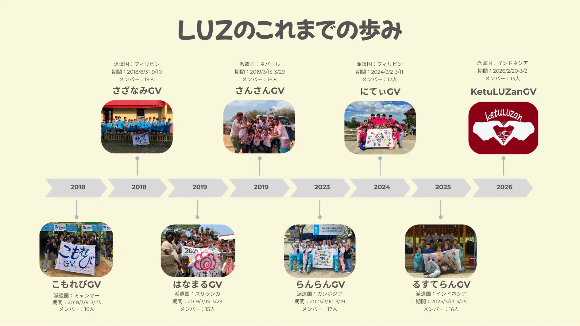 今年は、KetuLUZanGV(カトゥルサンGV)というチーム名で、インドネシアのタンゲランでGVを行います!チーム名は、インドネシア語で「真心」を意味する"Ketulusan"と"LUZ"を掛け合わせたものです。真心を込めて活動に取り組みたいという私たちの思いが込められています。