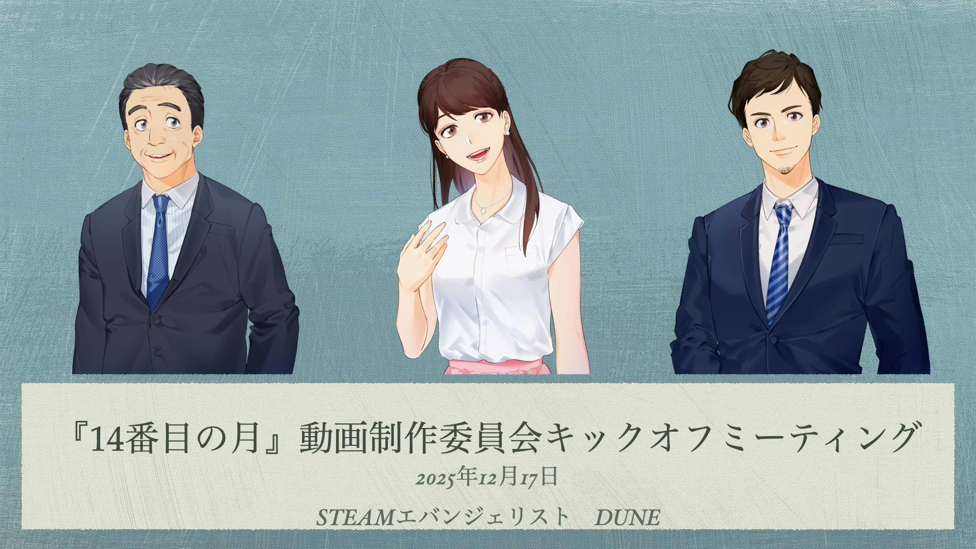 2025/12/19 15:47プロジェクトページをご覧の皆様、こんにちは。「14番目の月」でSTEAMエバンジェリストを務めております、DUNEです。数あるプロジェクトの中から、私たちの挑戦に目を留めていただき、本当にありがとうございます!本日は、皆様にワクワクするご報告が2つあります。1. いよいよ12月21日(日)、配信スタート!お待たせいたしました!私たちの記念すべき動画教材第一弾となる「ロジカルシンキング編」の配信が、12月21日(日)よりスタートします。「ロジカルシンキング」と聞くと難しそうに感じるかもしれませんが、ご安心ください。個性豊かなキャラクターたちが繰り広げるドタバタ劇を通じて、大人も子供もゲラゲラ笑いながら、いつの間にか「論理的思考」が身についてしまう……そんな動画に仕上がっています。 2. 熱気あふれるキックオフミーティングを開催配信に先立ちまして、去る12月17日、約50名の製作委員会メンバーに向けた「キックオフミーティング」を開催いたしました!ミーティングでは、私の口から直接、なぜ今、「STEAM」という枠組みが必要なのか?この動画で描きたい「世界観」とは?実はこんな秘密が…?キャラクターの裏設定などについて、熱く、熱く語らせていただきました。参加メンバーからも「早く子供に見せたい!」「これなら大人も勉強になる!」といった嬉しい声を多数いただいております。この活動報告でも、キックオフで公開した裏話や制作の裏側を、順次ご紹介していきますので、ぜひ楽しみにしていてくださいね。まずはチャンネル登録をお願いします!12月21日の配信開始と同時に通知が届くよう、ぜひ今のうちにYouTubeチャンネルの登録をお願いいたします。▼ 14番目の月チャンネルhttps://www.youtube.com/@the14th-mooncom皆様と一緒に、新しい教育の未来を作っていけることを心から楽しみにしています。応援よろしくお願いいたします!DUNE もっと見る