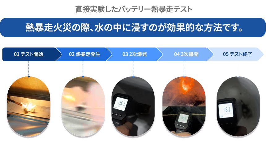 バッテリー熱暴走! バッテリーを水に浸すのが最も安全な方法