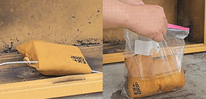 EXグリップは、モバイルバッテリーを機能性ポーチに入れて保管して使用することができ、熱暴走が発生した場合、異常兆候(煙、音)が発見されれば、直ちに安全な場所にポーチを移動させ、迅速な対策と火災鎮火で2次被害を減らしてくれる熱暴走対応用ポーチです。