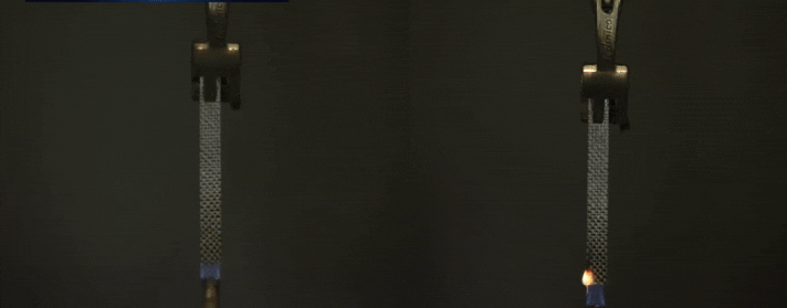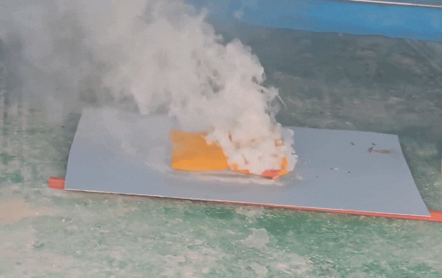 一定の火による熱でパッチにカプセルが破裂し、一瞬にして火が消えるのを確認できました。
