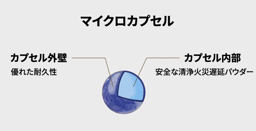 マイクロカプセルとは、微細なパウダーをマイクロカプセルに入れて火災発生時に高くなる温度を感知してマイクロカプセルが分離され、火災に備えたパウダーが自動噴射される製品です。