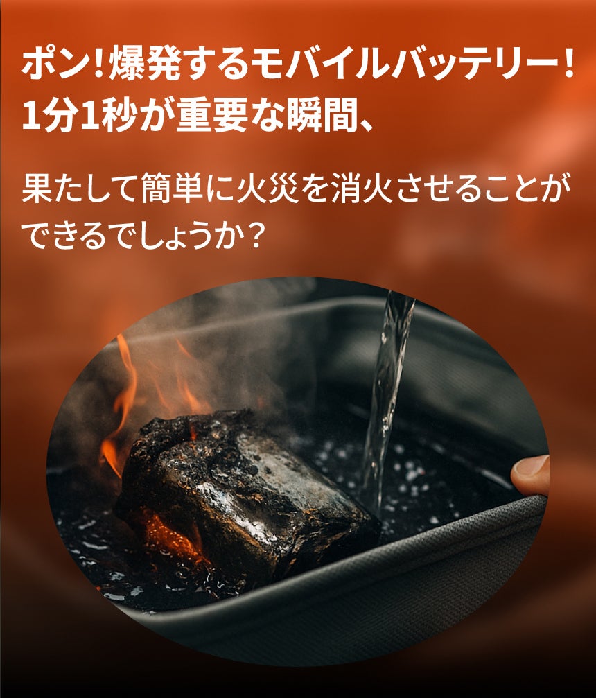 現在、リチウムバッテリーが内蔵された機器で熱暴走発生時には水の中に浸かるのが早い方法の一つです。