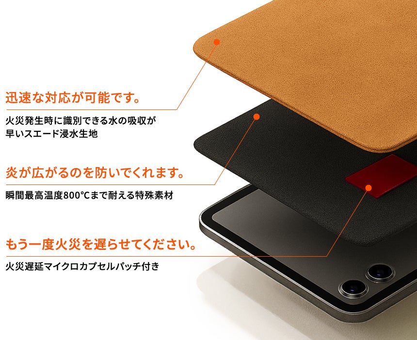 コーティングと加工を少なくし、緊急熱暴走状況時に水が素早く吸収されるように生地を加工しました。