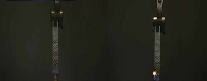 一定の火による熱でパッチにカプセルが破裂し、一瞬にして火が消えるのを確認できました。