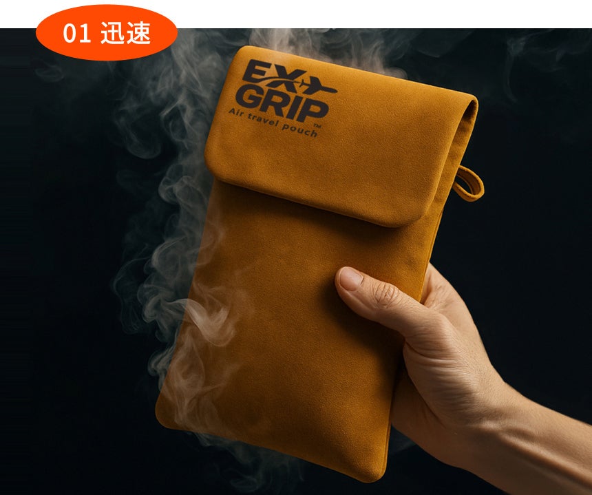 EXグリップは、熱暴走が発生する前に発生する煙、匂いで異常の有無を認知し、落ち着いて早く熱暴走バッテリーに対応できるところまで移動できるようにサポートするモバイルバッテリー保管特殊ポーチです。