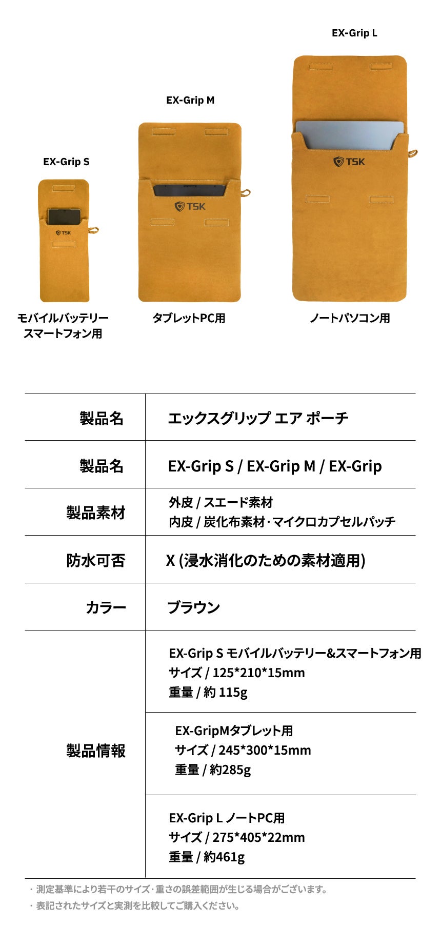 A. 3つのサイズをご用意しております。 補助バッテリー&スマートフォン用、タブレット用、ノートパソコン用