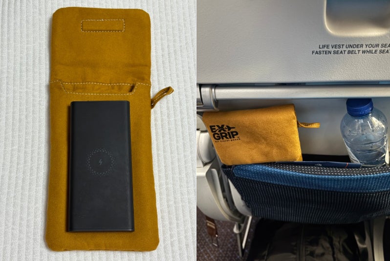 EXグリップポーチは、実は私が6ヶ月前、海外出張の準備前にモバイルバッテリーを入れる製品を探していたところ、偶然知り合い、今年7月に発売されるモバイルバッテリー熱暴走対策ポーチです。