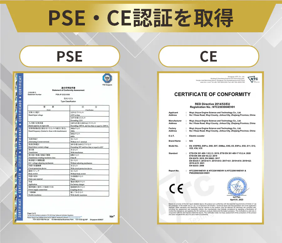 PSE・CEなど国際基準を満たした認証モデル。