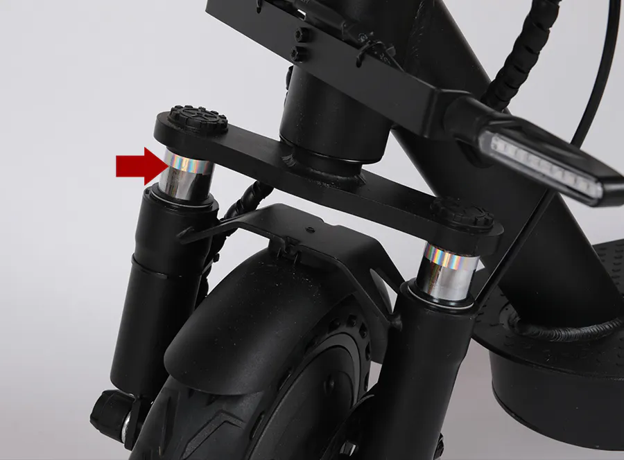 A:前後ディスクブレーキとフロントサスペンションを搭載しています。