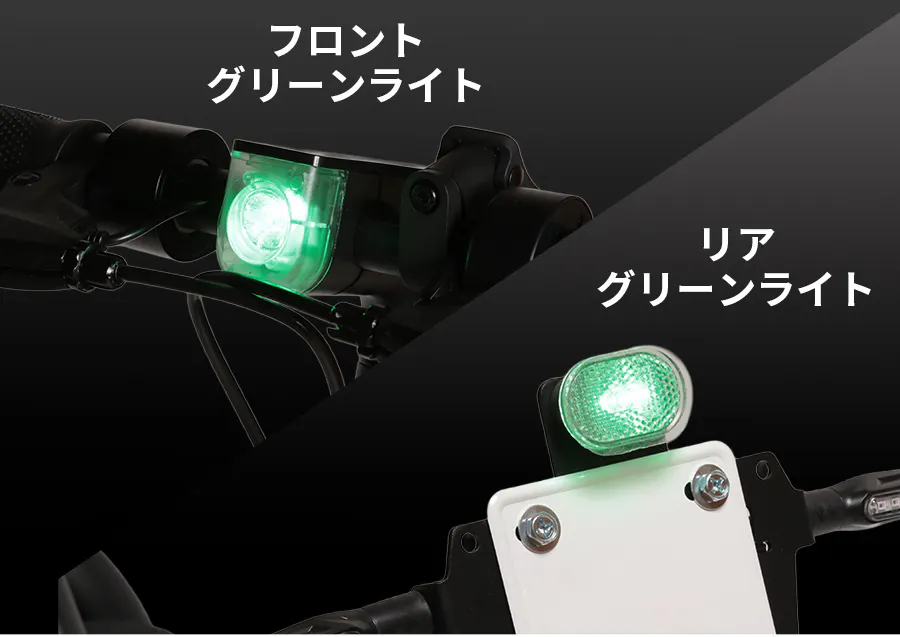 グリーンライトは、時速20kmで常時点灯し、時速6kmで点滅します。