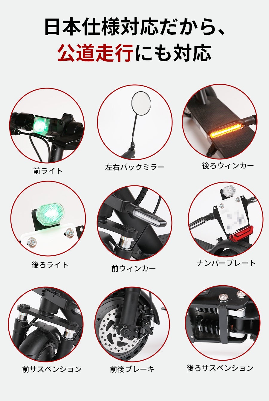 日本の新しい法規に準拠した設計で、公道走行にも対応しています。