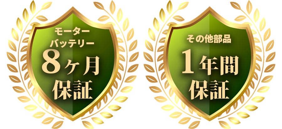 ・代理店によるサポート:モーター・バッテリー:8か月保証、その他部品:1年間保証